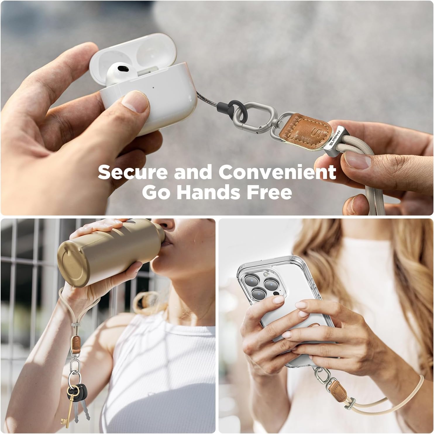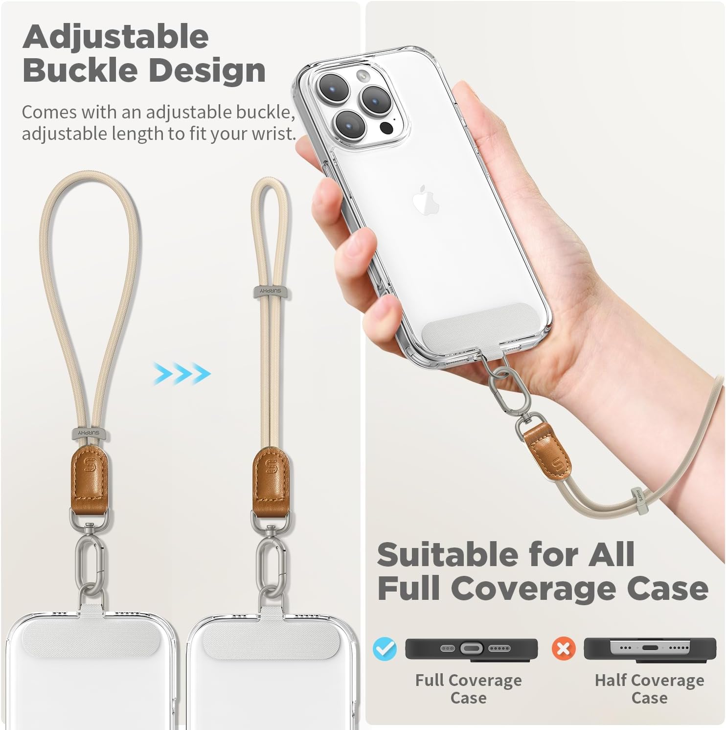 - Anti - Fall Phone Lanyard : SURPHY innovative cell phone lanyard with friendly adjustable metal clasp, just a simple slide the clasp to adjust wrist lanyard to the right elasticity for your wrist, keeping the lanyard firmly attached to your wrist, effectively eliminates the all - too - common risk of your cell phone slipping out of your hand
