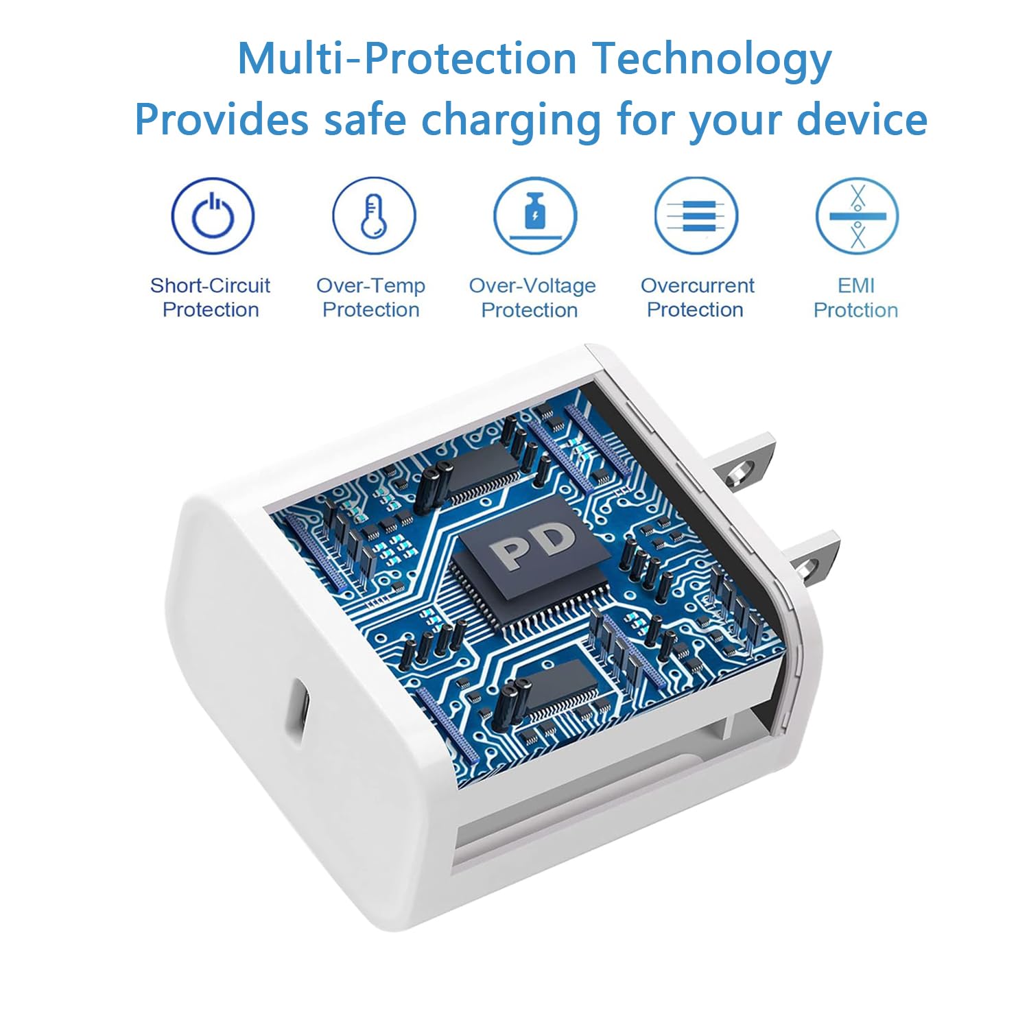 - [Universal Compatibility]This iPhone Fast Charger seamlessly charges all devices that support Lightning, including iPhone 14/14 Pro/14 Pro Max/14 Plus/13/13/13 Mini/13 Pro/13 Pro Max/12/12 Mini/12 Pro/12 Pro Max/SE 2020/11/11 Pro/11 Max/XS/XS Max/XR/X 8 Plus and AirPods. The USB C charger block 12W PD technology ensures stable and fast charging for each compatible device