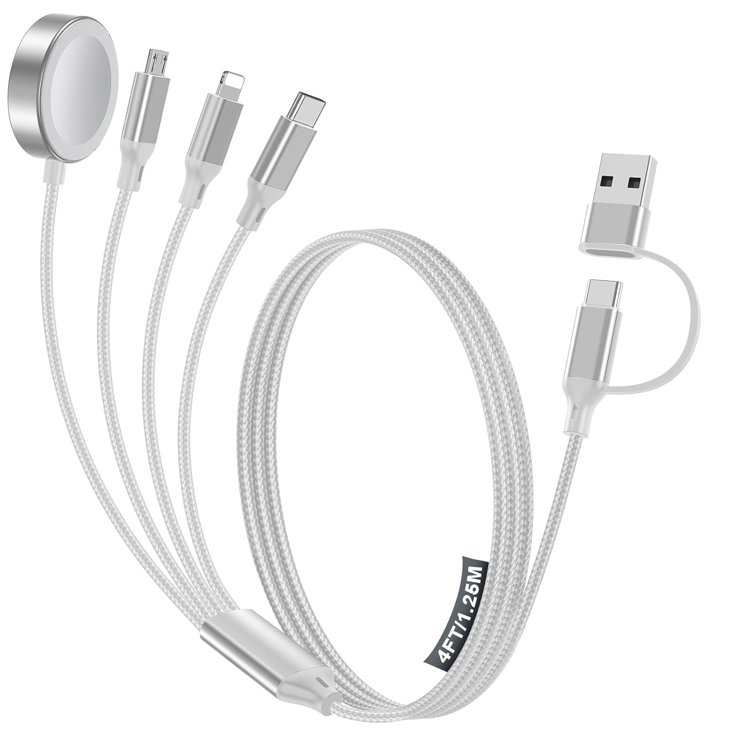 - ăTravel Essentials & ConvenientăThis 4-in-2 Type C/USB A cable is a travel essential and convenient to carry around with lightweight.Use this portable charging cable compatible with Apple Watch/iPhone and Samsung devices on flights, in cars, or with power banksâsuitable for home, office, and travel accessories.It fits in your travel bag smoothly take it on the go, just charging your Apple watch/iPhone/Samsung or any other devices at anytime.