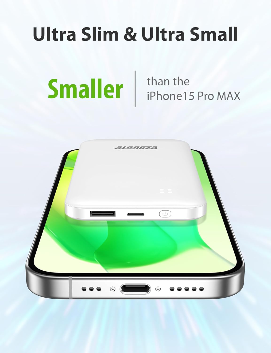 Alongza Portable Charger Built-in Cables and AC Wall Plug, Slim Fast Charging Power Bank 10000mAh, Lightweight USB C External Battery Pack Compact Travel Cell Phone Charger