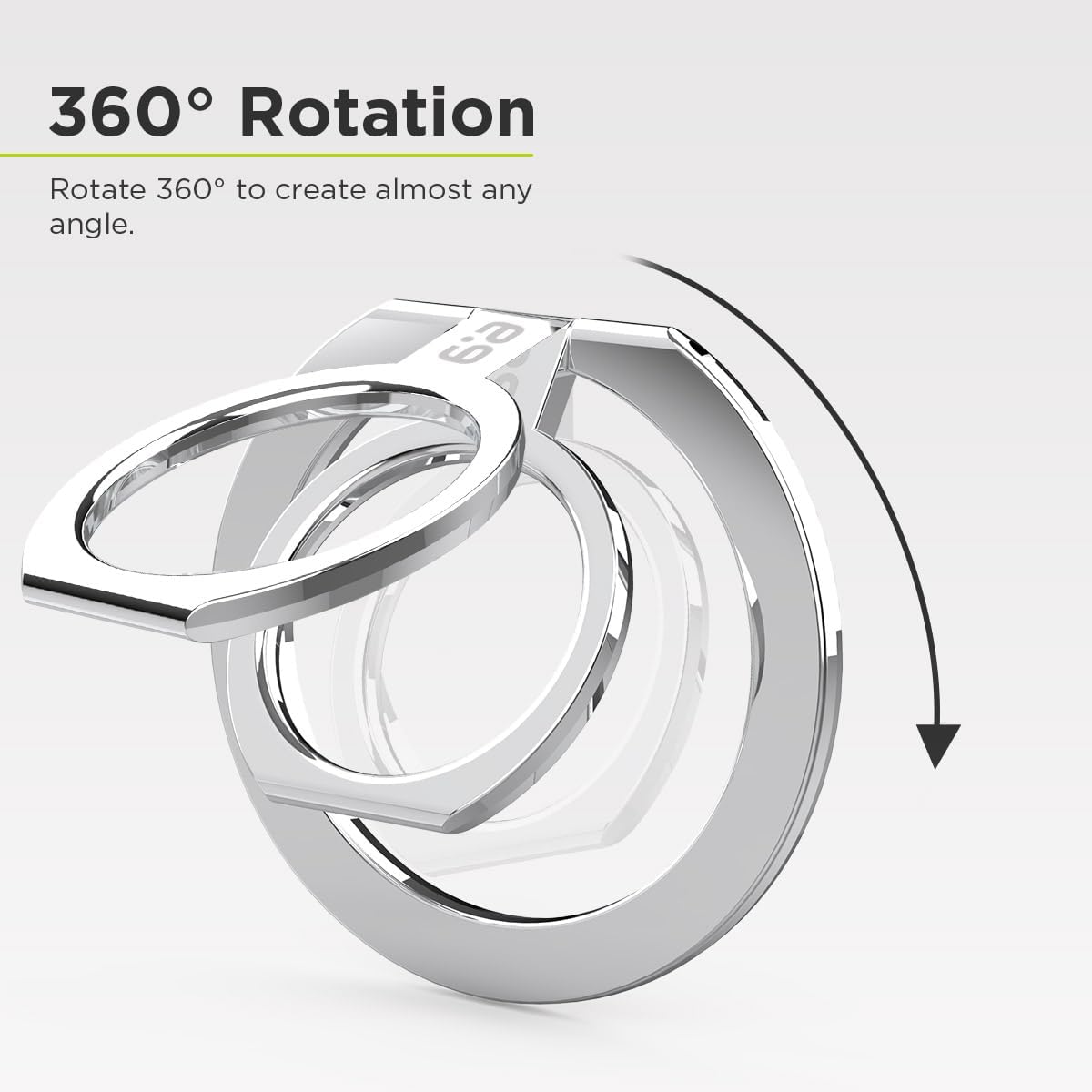 PureGear Magnetic Phone Grip Ring Stand, Magnetic Phone Ring Holder for MagSafe iPhone 16, 16Pro, 16Plus, 16ProMax, 15, 15Plus, 14, 14Pro, 14Pro Max, 13, 12, Adjustable Kickstand (Chrome Silver)