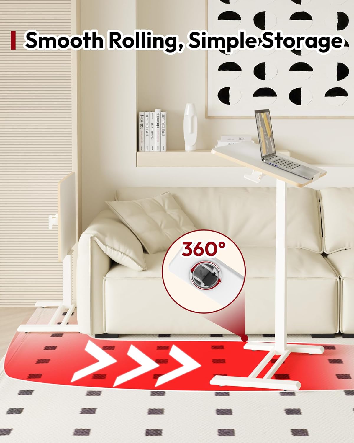 - Effortless Height Adjustment with Gas Spring System:Adjustable Overbed Table with built-in gas spring pneumatic lift (25.8"-41.3") enables smooth, single-handed height control. Perfect as a Mobile Standing Desk or adjustable desk – eliminate bending or force for ergonomic work near beds, sofas, or recliners.