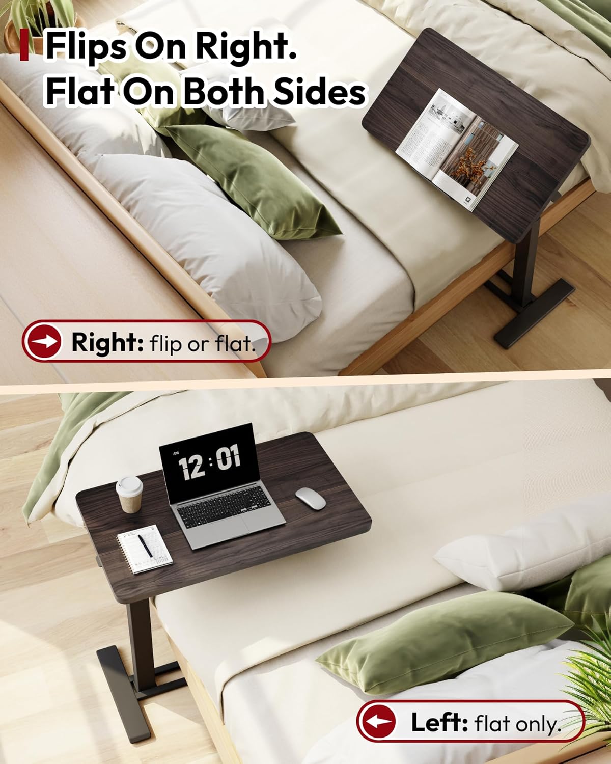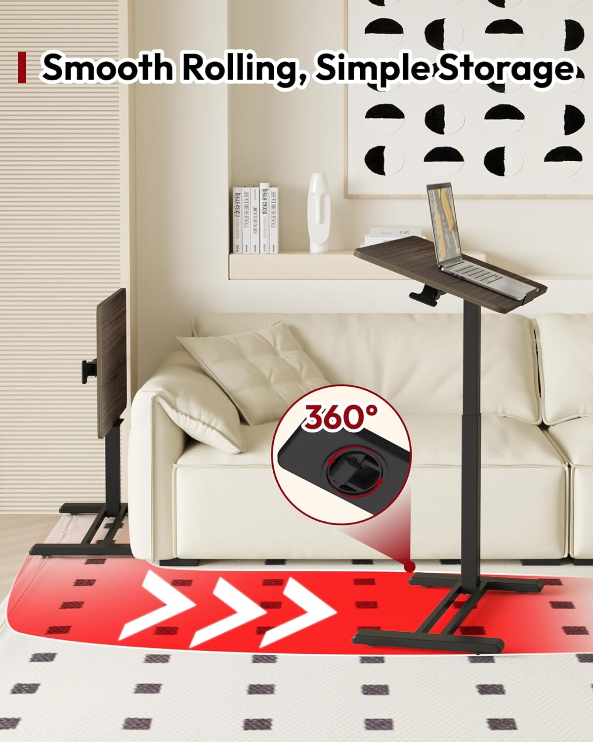 - Effortless Height Adjustment with Gas Spring System:Adjustable Overbed Table with built-in gas spring pneumatic lift (25.8"-41.3") enables smooth, single-handed height control. Perfect as a Mobile Standing Desk or adjustable desk – eliminate bending or force for ergonomic work near beds, sofas, or recliners.