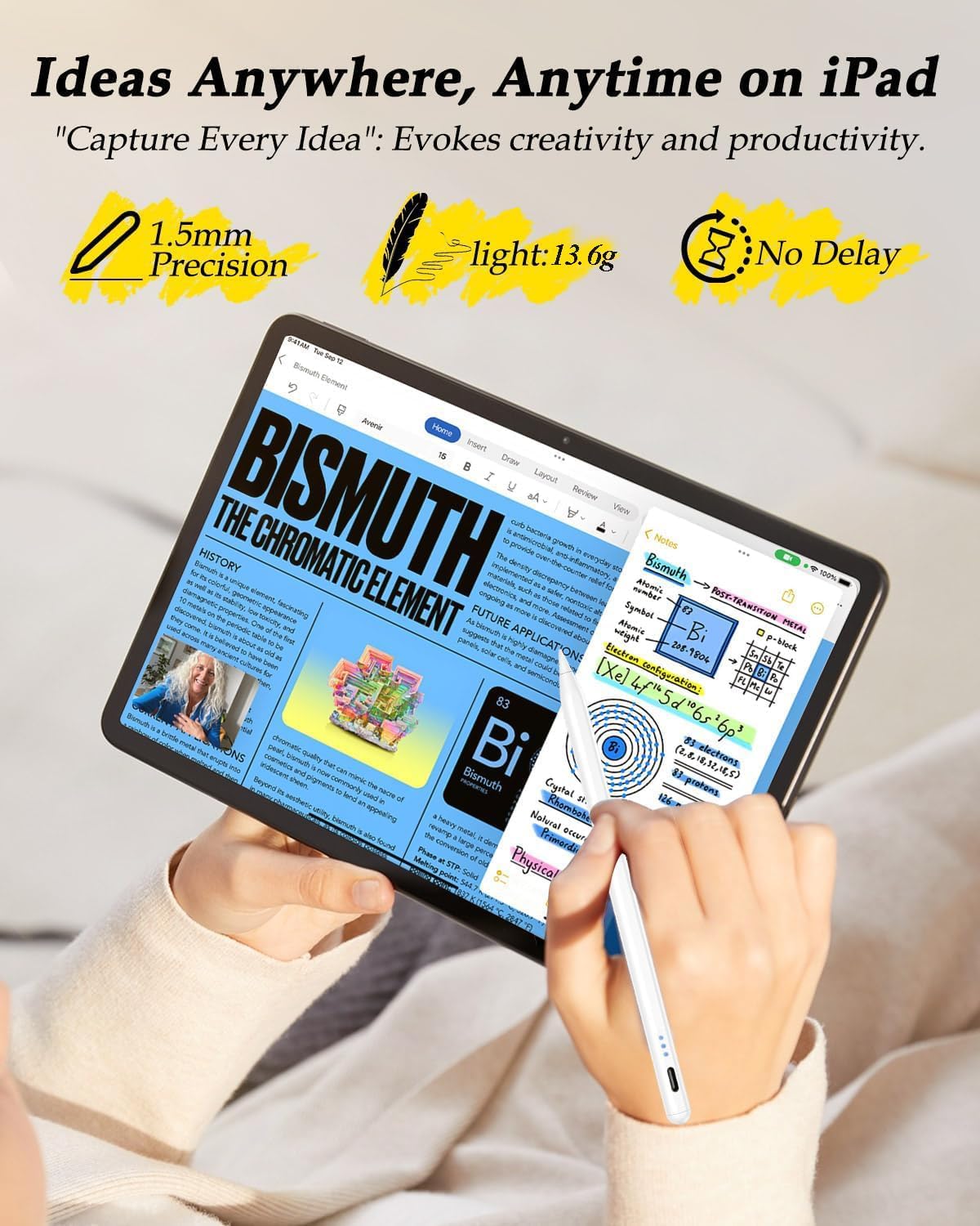 - 🖊【Palm Rejection Function】No need to wear anti-friction gloves as you can rest your hand on the screen without worrying about accidental touches. The upgraded built-in magnet in the pencil for iPad offers stronger attraction than the original for Apple Pencil and firmly attaches to the side of iPad. This enables easy portability and prevents the stylus from slipping or getting lost.