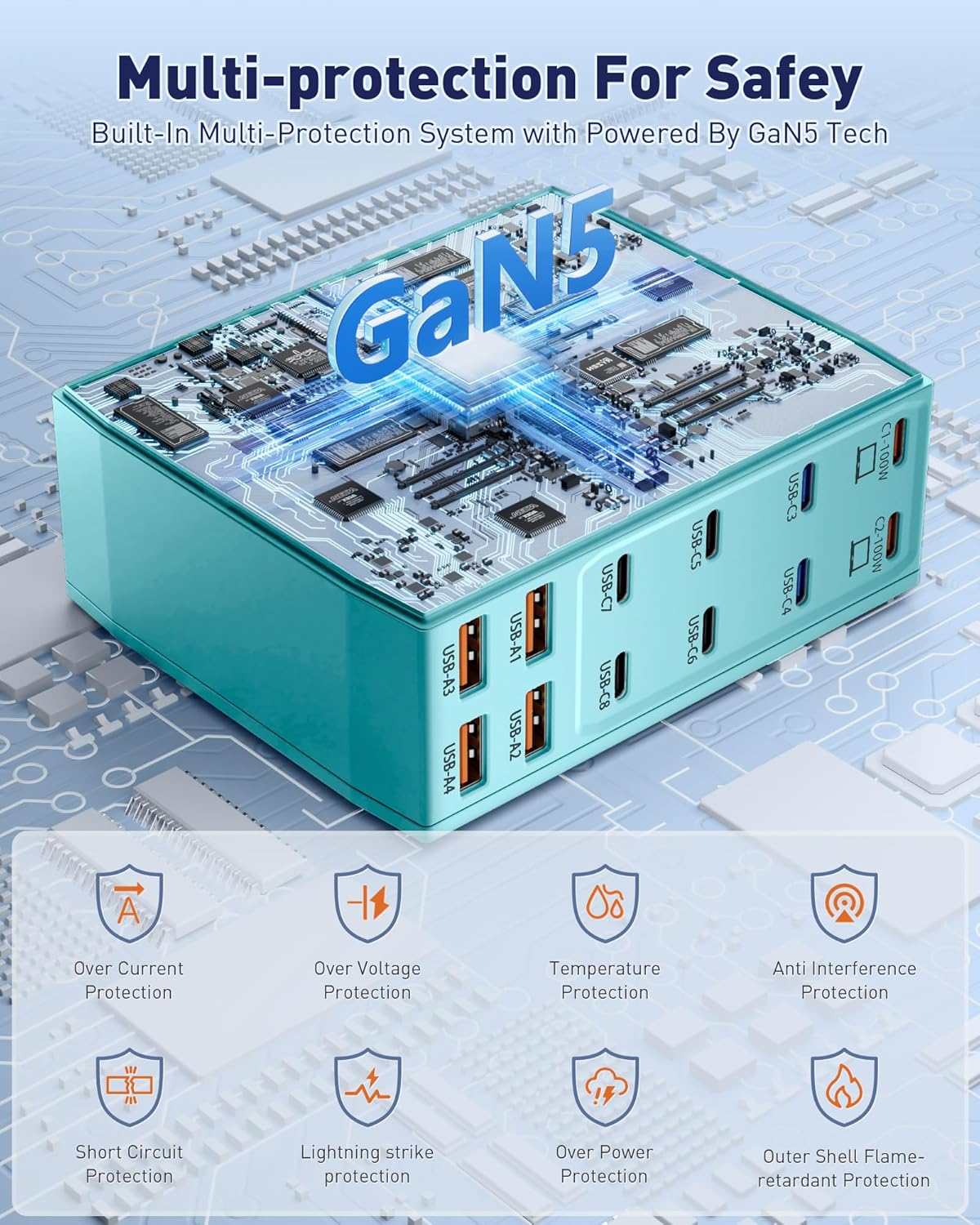 - ă12-in-1 USB C Charging StationăThis 600W USB C Charger Block comes with 8 USB C ports and 4 USB A ports to charge multiple devices, simplify your charging setup, and let you experience the convenience of ultra-fast and ultra-high output charging. With its smart charging technology, it can automatically detect and provide the best power output for each connected device, ensuring fast and efficient charging.