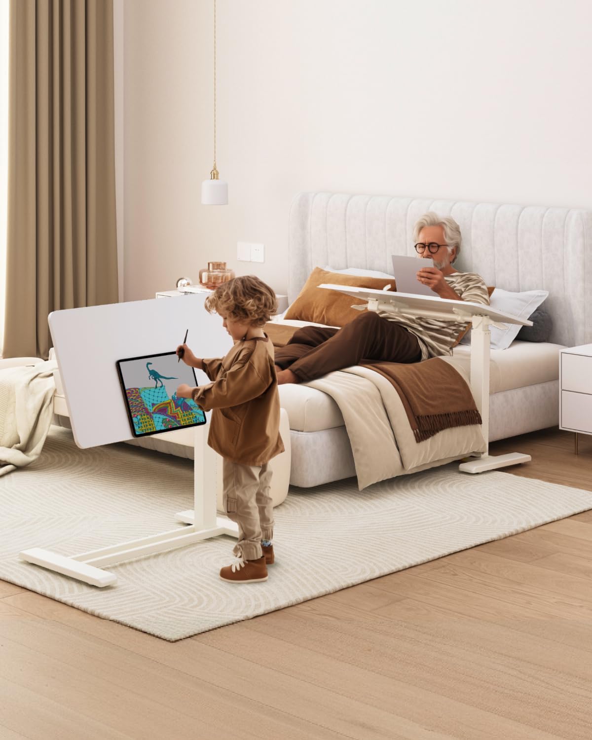- Multi-Functional Versatility for Daily Use:As a versatile Overbed Table, Bedside Table, or Hospital Bed Table, it provides a sturdy surface for eating, reading, and working near beds, couches, or recliners. The spacious 27.6" W x 15.7" D desktop doubles as a Laptop Desk, catering to home offices, study, or patient care without leaving the bed.