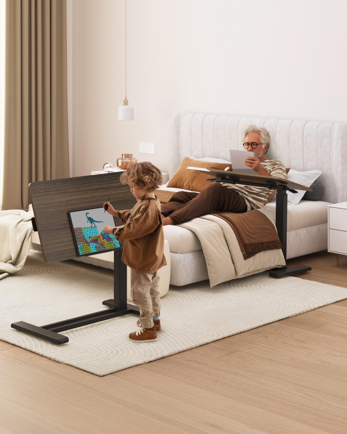 - Multi-Functional Versatility for Daily Use:As a versatile Overbed Table, Bedside Table, or Hospital Bed Table, it provides a sturdy surface for eating, reading, and working near beds, couches, or recliners. The spacious 27.6" W x 15.7" D desktop doubles as a Laptop Desk, catering to home offices, study, or patient care without leaving the bed.
