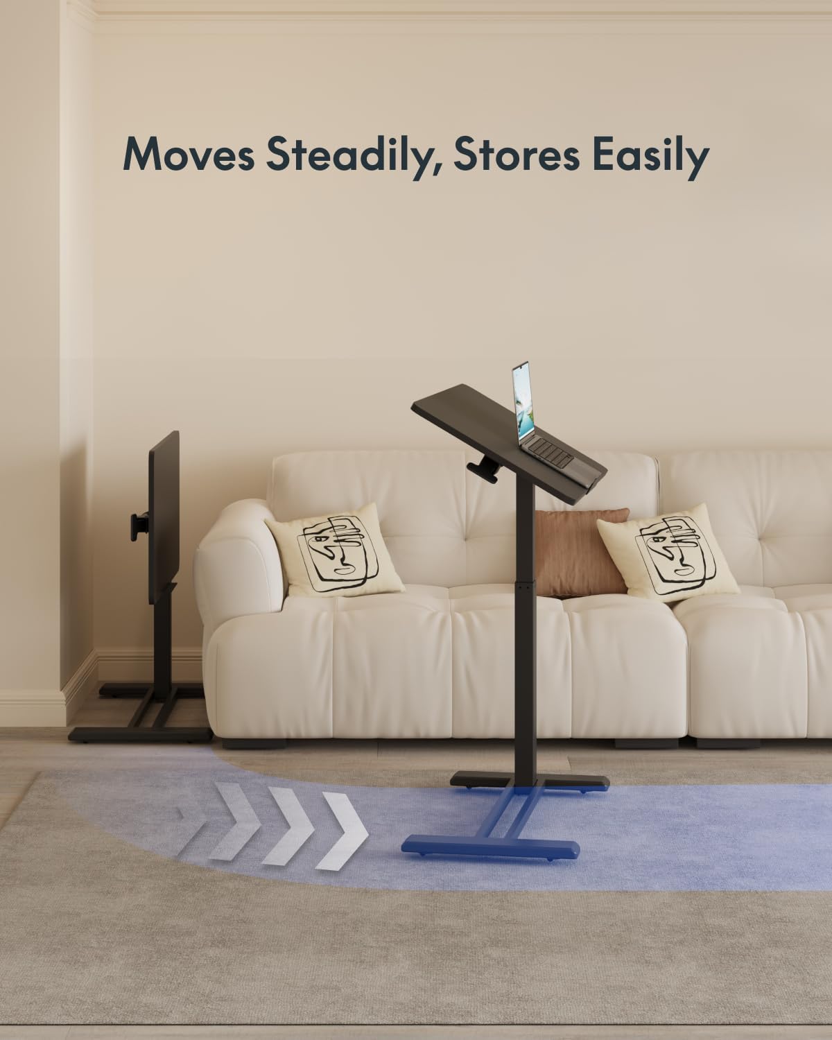 - Easy Mobility and Space-Saving Design:Equipped with 4 hidden casters, this Portable Desk and Rolling Desk Adjustable Height glides effortlessly anywhere. Its low-profile base tucks under furniture (minimum 1.2" high), serving as a compact small desk that maximizes space in homes, offices, or as an overbed bedside table.