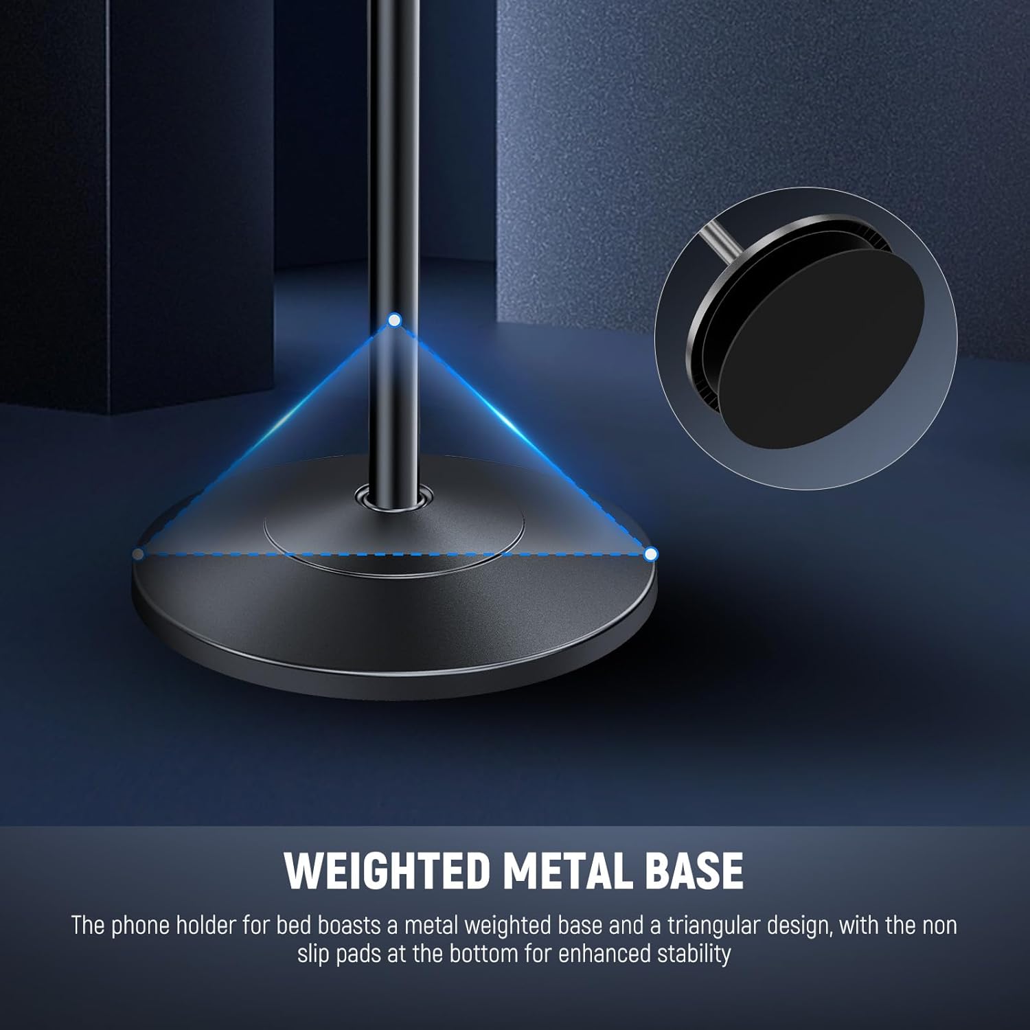 - 【Weighted Metal Base】 The cell phone holder for bed lying down boasts a metal weighted base and a triangular design, with the non slip pads at the bottom for enhanced stability, ideal as content creator essential gimbal action camera gear and influencer must have photography accessories