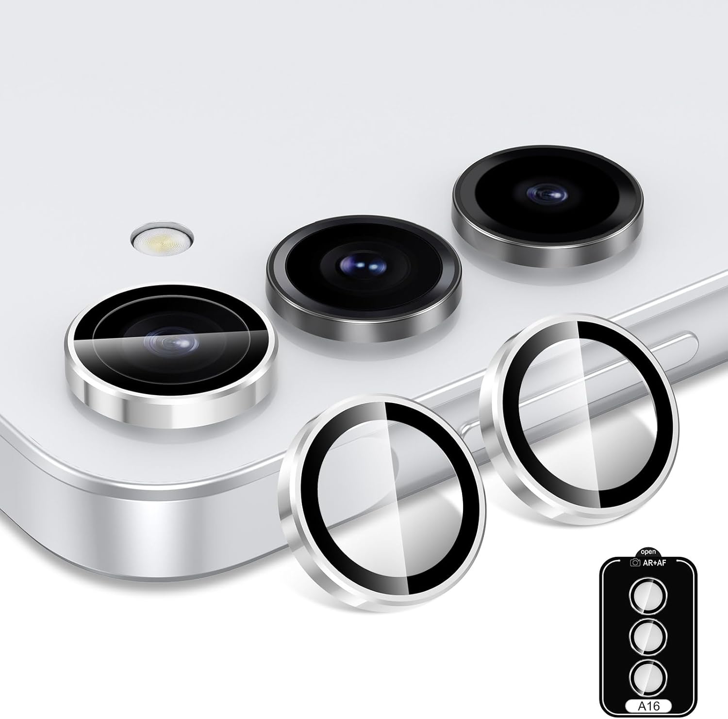for Samsung Galaxy A16 Camera Lens Protector, Individual Metal Ring Tempered Glass Lens Cover, [Strong Adsorption] Scratch Resistant Ultra-Thin HD Clear Lens Cover, 1 Set-Slivery Ring