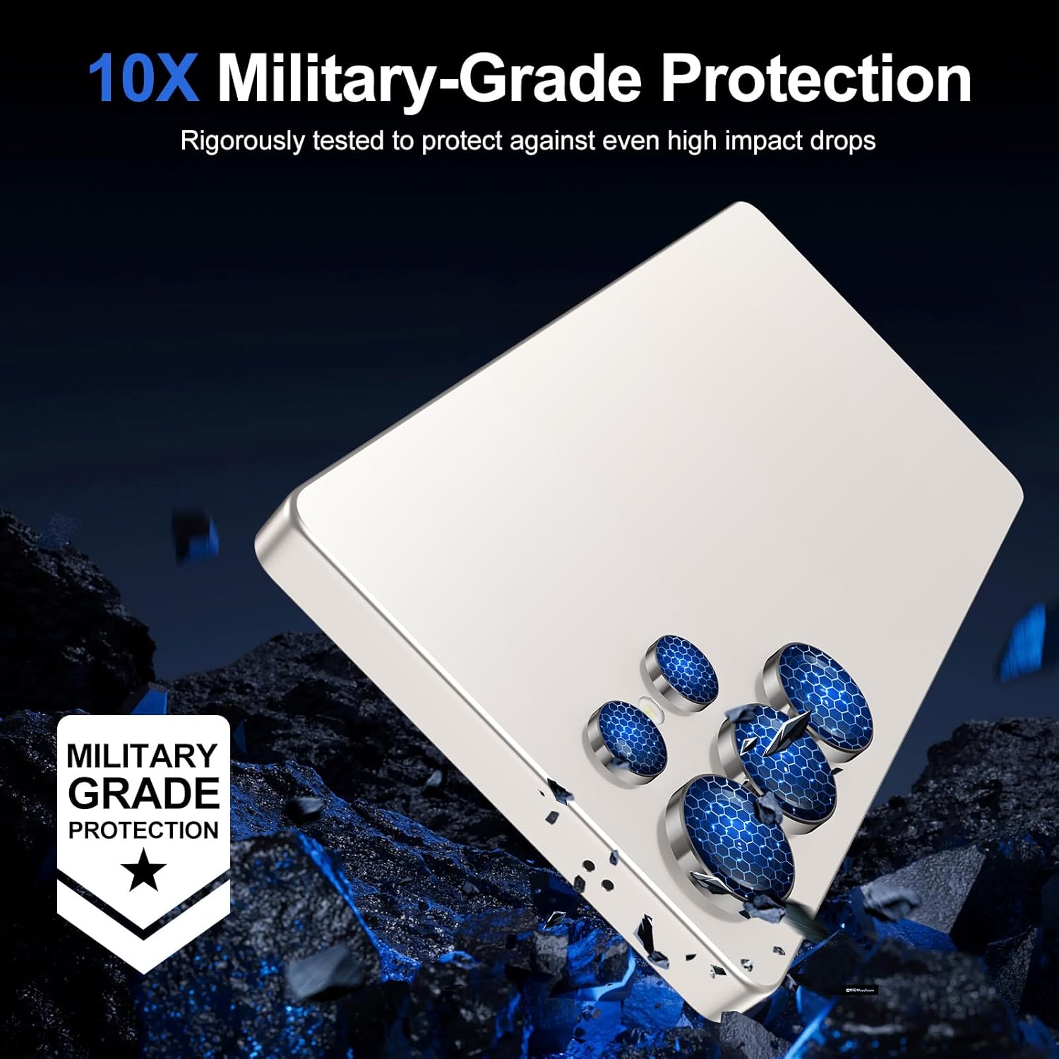 - ă9H Ultra ProtectionăMade of 9H hardness coated tempered glass and aviation aluminum alloy. This camera protector is sturdy and not bulky, can prevent the camera from scratches, scuffs and bumps. Lightweight, Dustproof, Waterproof, Oleophobic and will not affect the use of the phone case.