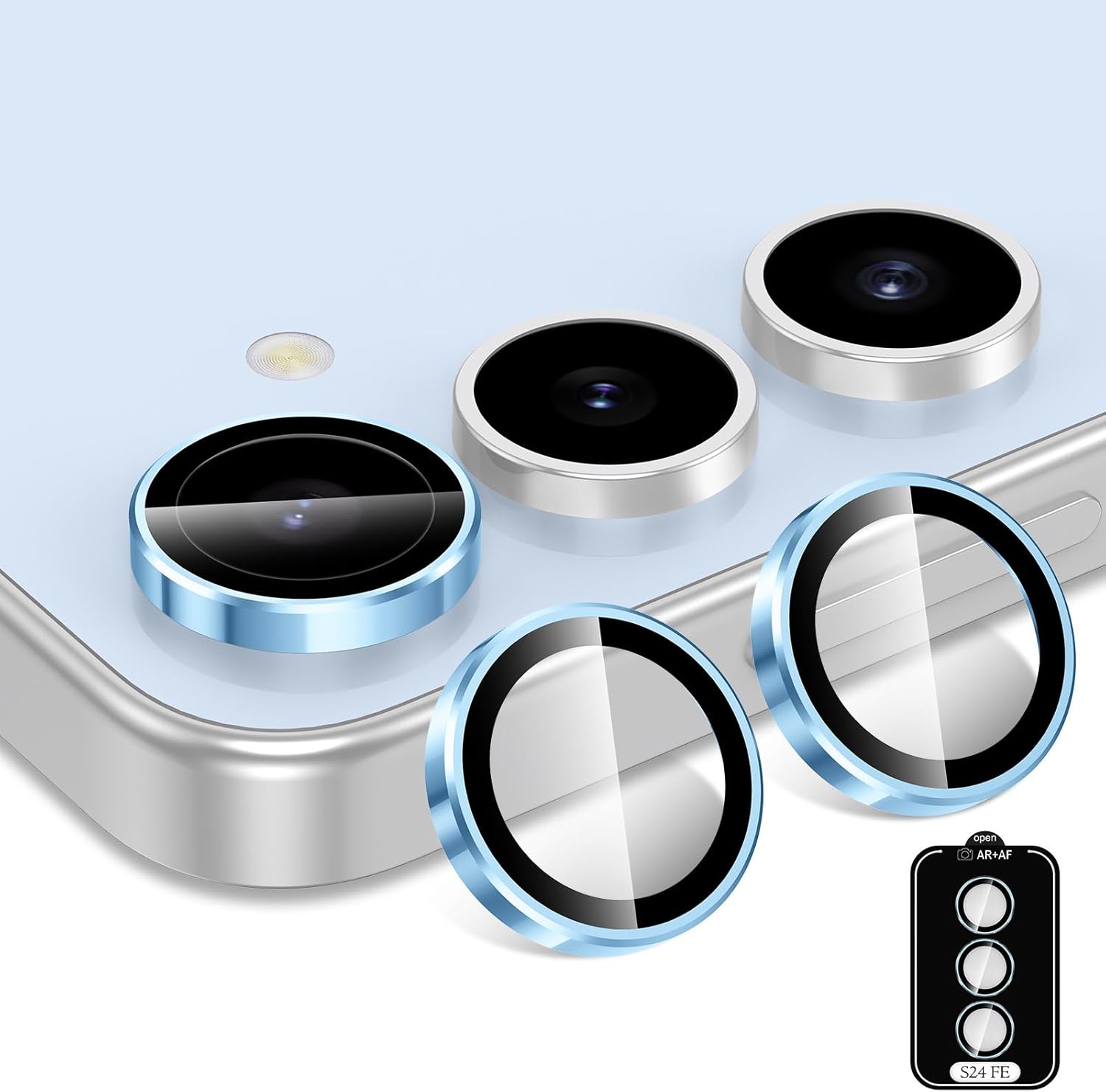 - 【Compatible Model】This ultra-thin camera lens protector only compatible with Samsung Galaxy S24 FE. DO NOT FIT other models. Easily fit and match with most phone cases.