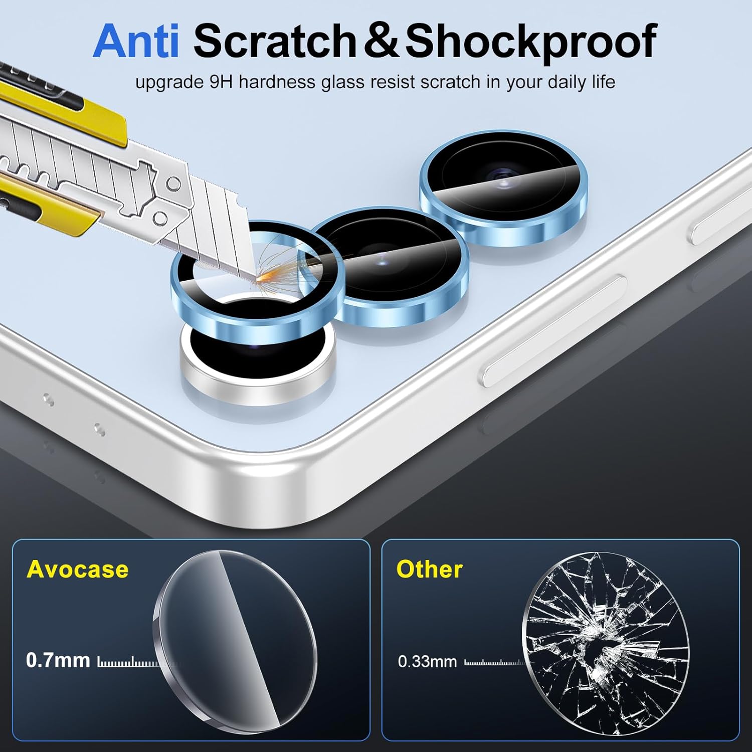 - 【9H Ultra Protection】Made of 9H hardness coated tempered glass and aviation aluminum alloy. This camera protector is sturdy and not bulky, can prevent the camera from scratches, scuffs and bumps. Lightweight, Dustproof, Waterproof, Oleophobic and will not affect the use of the phone case.