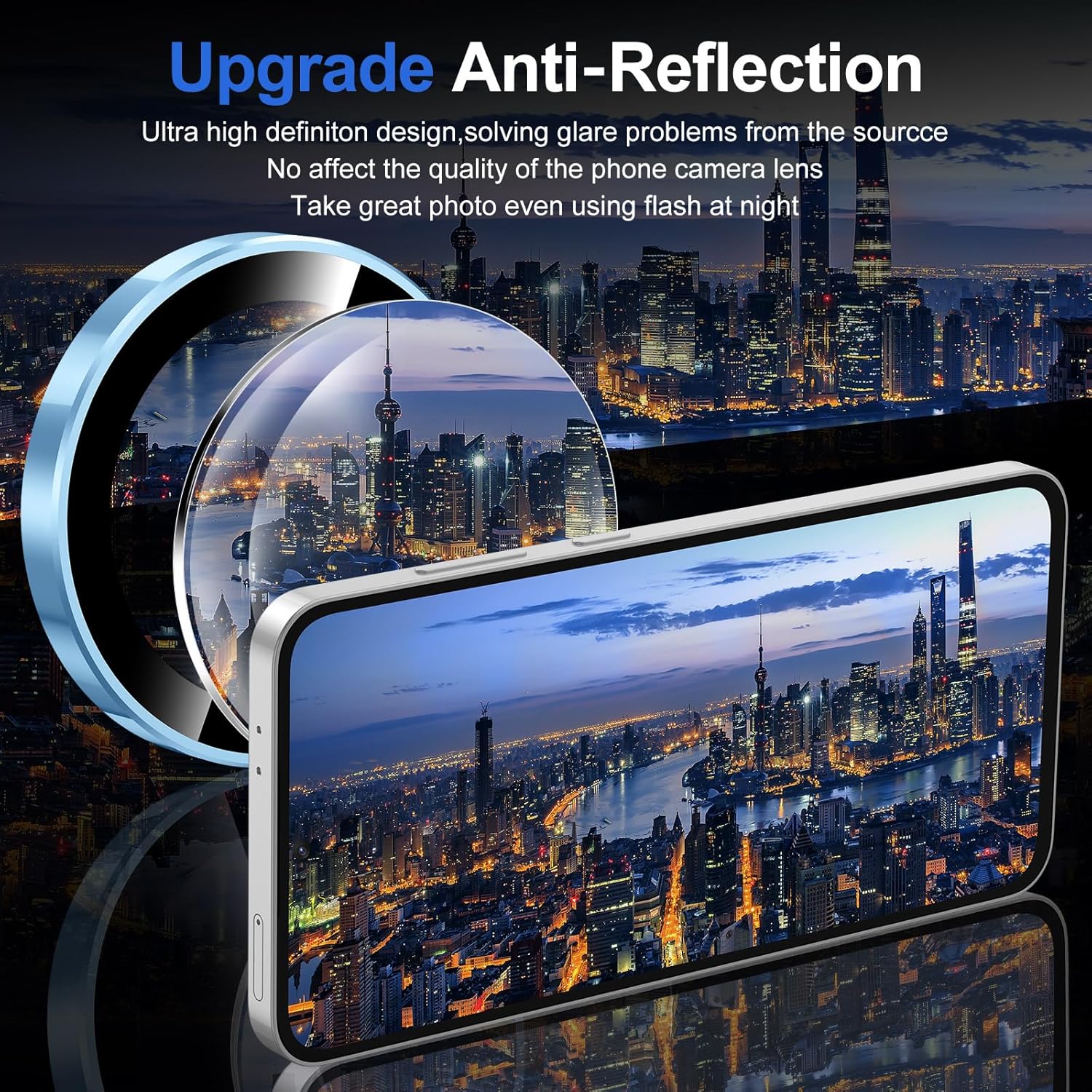 - 【HD Clarity】Camera lens protector adopt upgrade anti-reflection technology, High light transmittance. It won't affect the original stunning image performance of your phone whether it is day or night. The individual-lens design keeps your flash uncovered and working perfectly.