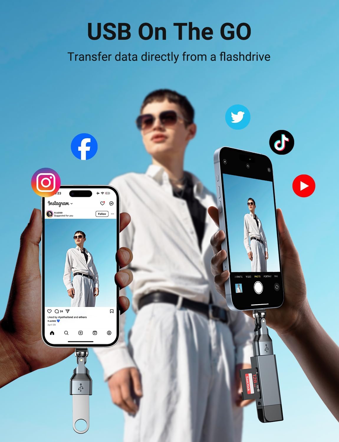 - 【Plug-and-Play OTG Functionality】With the advanced USB On-The-Go (OTG) support, you can transform your smartphone or tablet into a versatile workstation. Effortlessly connect flash drives to transfer files, or attach peripherals like mice and keyboards. There's no need for additional drivers! Just plug it in and instantly enhance your device’s functionality, allowing you to maximize your productivity and enjoy a seamless user experience.