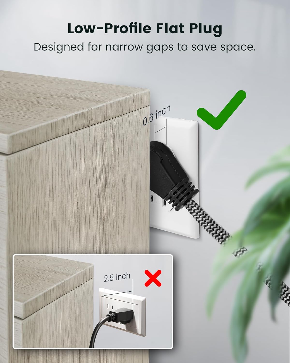 - Space-Saving Flat Plug Design: 6FT long power extension cord with space-saving flat plug fits easily in tight spaces and behind furniture, ensuring a tidy and organized space. This design maximizes space in your home