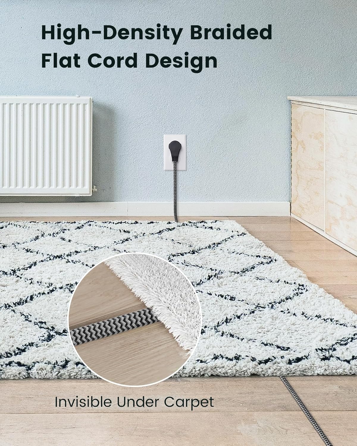 - 360° Rotating Plug: Featuring a 360° rotating plug (only 0.6 inches thick), this extension cord allows you to adjust the angle for easy access to various wall sockets. Ideal for tight spaces, it ensures convenient connections from any direction