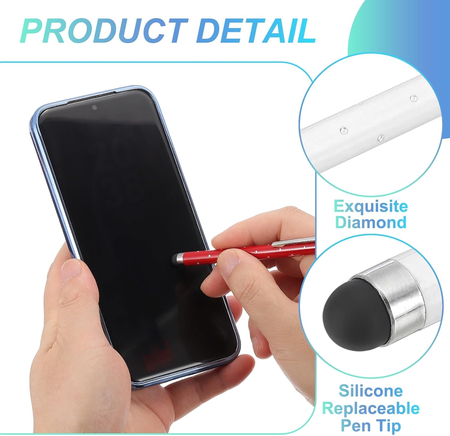 - Application: These shimmering crystal universal metal capacitive pens feature ultra-sensitive rubber tips made of soft silicone, ensuring gentle contact with screens to prevent scratches. Suitable for smooth writing, sketching, detailed drawing, precision work, coloring, note-taking, gaming, studying, and office tasks.
