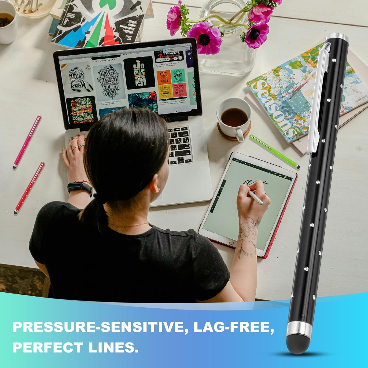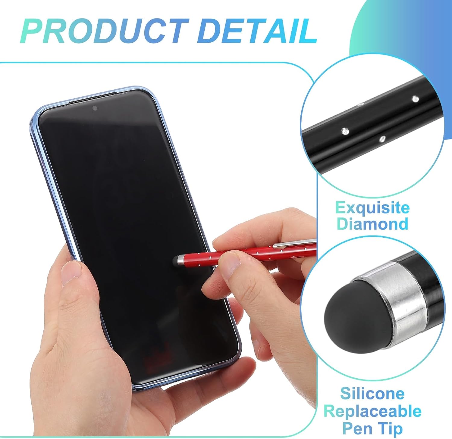 - Application: These shimmering crystal universal metal capacitive pens feature ultra-sensitive rubber tips made of soft silicone, ensuring gentle contact with screens to prevent scratches. Suitable for smooth writing, sketching, detailed drawing, precision work, coloring, note-taking, gaming, studying, and office tasks.