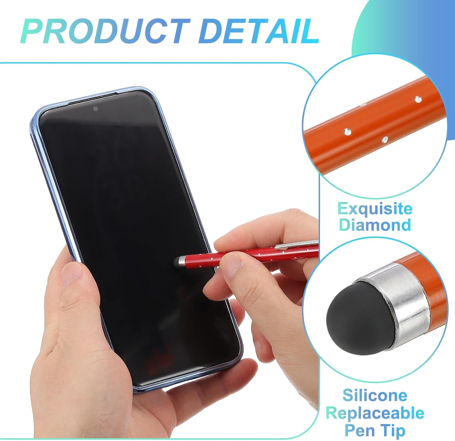 - Application: These shimmering crystal universal metal capacitive pens feature ultra-sensitive rubber tips made of soft silicone, ensuring gentle contact with screens to prevent scratches. Suitable for smooth writing, sketching, detailed drawing, precision work, coloring, note-taking, gaming, studying, and office tasks.