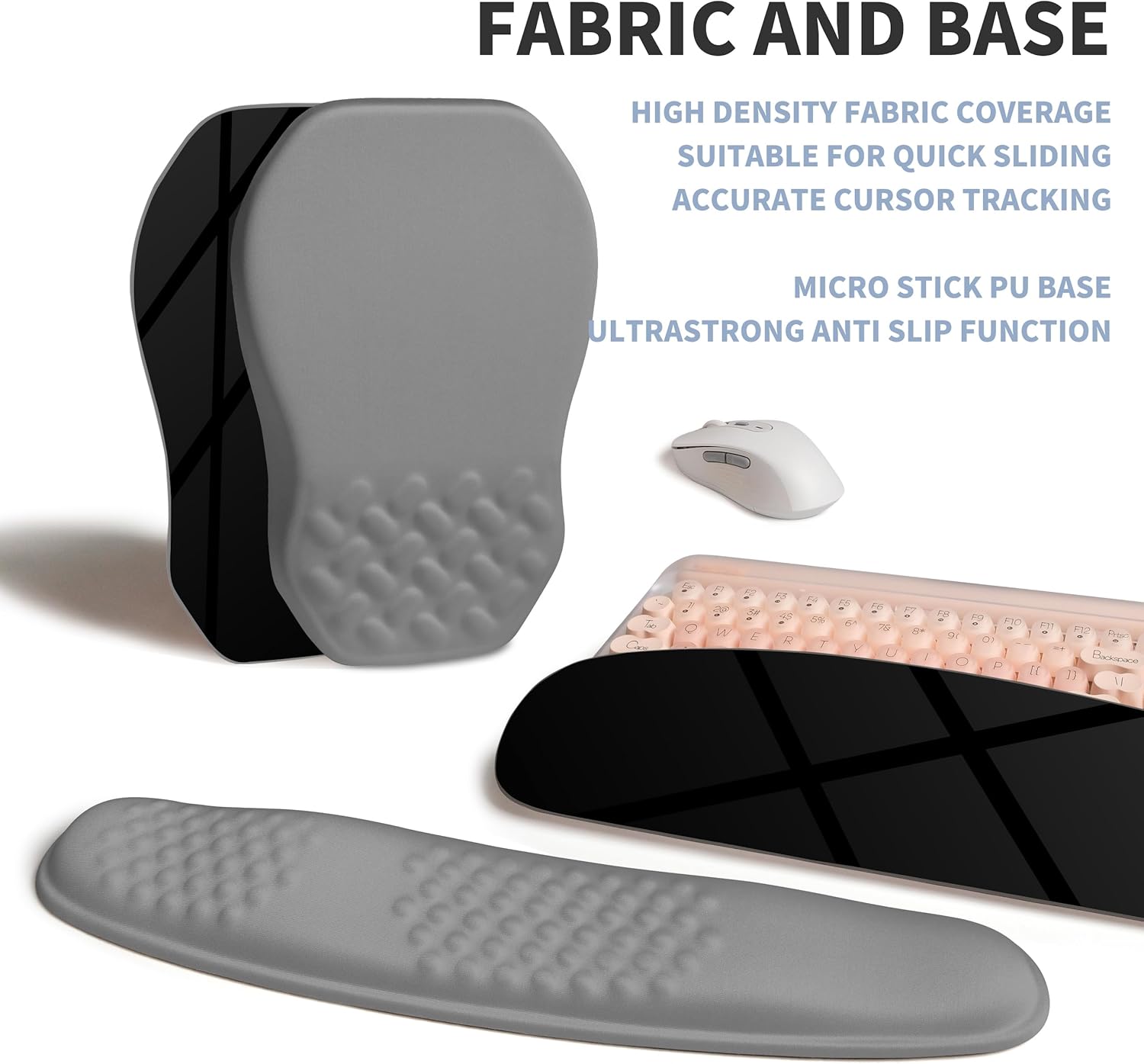 2-in-1 Ergonomic Set, Wave Keyboard Wrist Rest and Massage Slope Mouse Pad Wrist Support, Rebound Memory Foam for Relieve Carpal Tunnel Syndrome and Wrist Pain (Dark Grey)