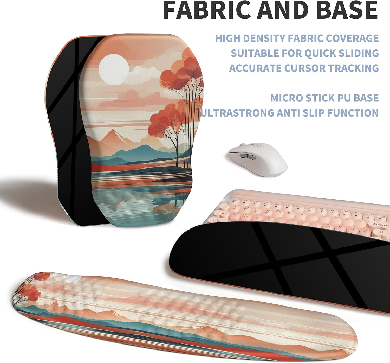 2-in-1 Ergonomic Set, Wave Keyboard Wrist Rest and Massage Slope Mouse Pad Wrist Support, Rebound Memory Foam for Relieve Carpal Tunnel Syndrome and Wrist Pain (Landscape)