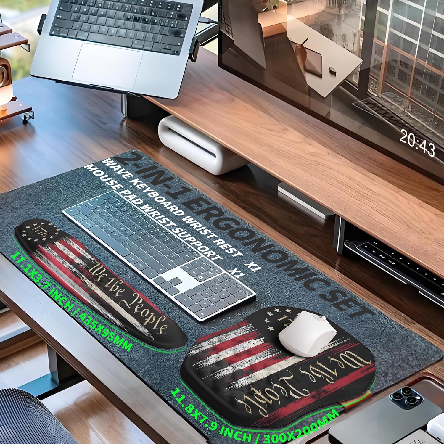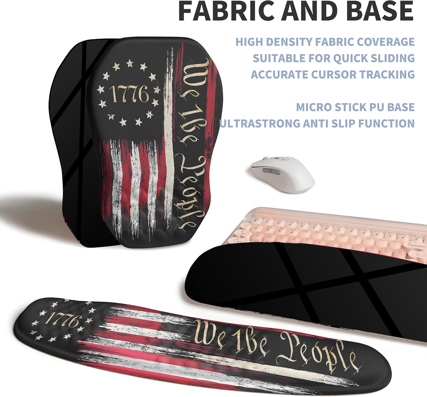 2-in-1 Ergonomic Set, Wave Keyboard Wrist Rest and Massage Slope Mouse Pad Wrist Support, Rebound Memory Foam for Relieve Carpal Tunnel Syndrome and Wrist Pain (Flag)