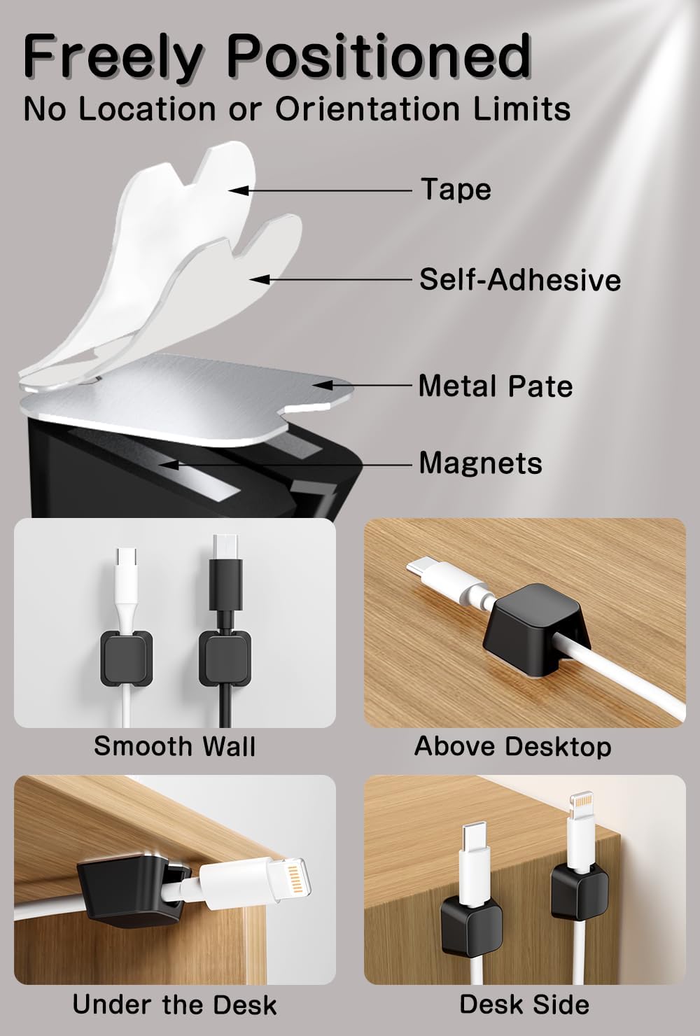 - 【Minimalist Office Decor】This square cable clips are made of durable silicone and strong magnets, easy to install, with a frosted finish and a simple, stylish design that blends well with modern home office desks and is great for desktop cable management