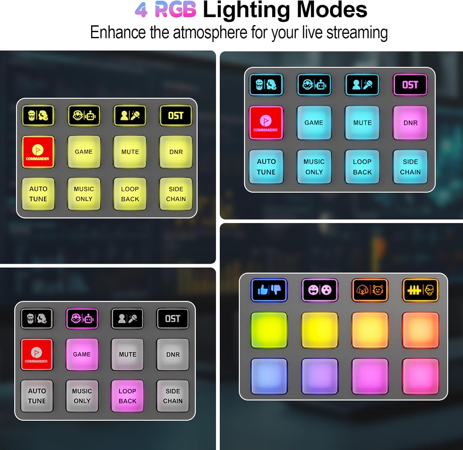 - Multiple Sound Effects: This mixer has four sound variations that can turn your voice into a man/woman/baby/robot; There are also 8 custom sound effects that you can use to record the music you need through wireless Bluetooth devices such as mobile phones and computers; 8 sound effects modes can make your live broadcast more vivid and interesting; 12 Auto -Tune. This feature is very suitable for musicians