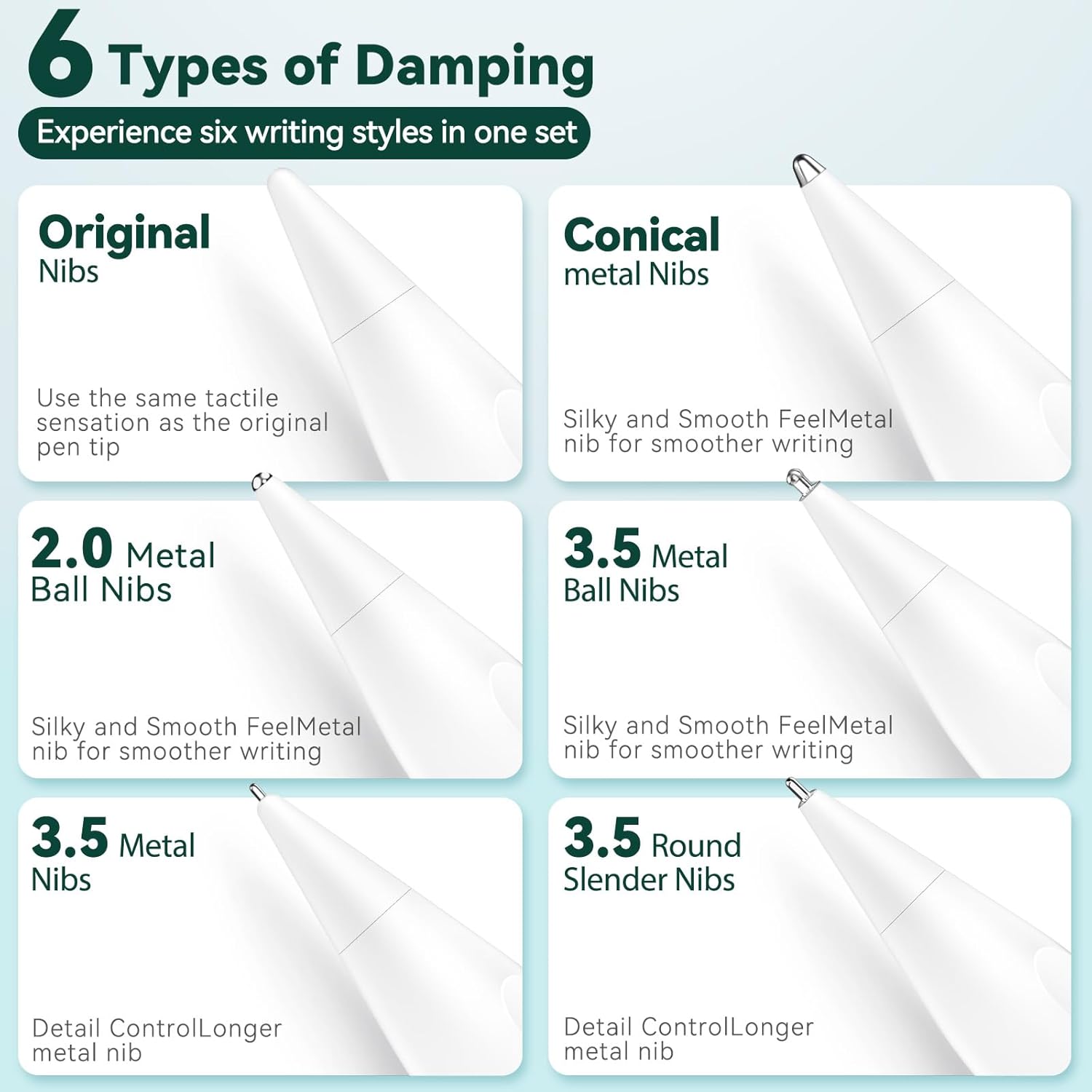- 【Multiple types of pen tips】Original model: 100% restores the official touch, the first choice of designers. Short metal head: 5mm ultra-low damping, a great tool for shorthand meetings. Medium-long metal head: 3° tilt sensing optimization, dedicated for painting and sketching. Slender metal head: a golden partner of paper film, with a sandy texture when writing.
