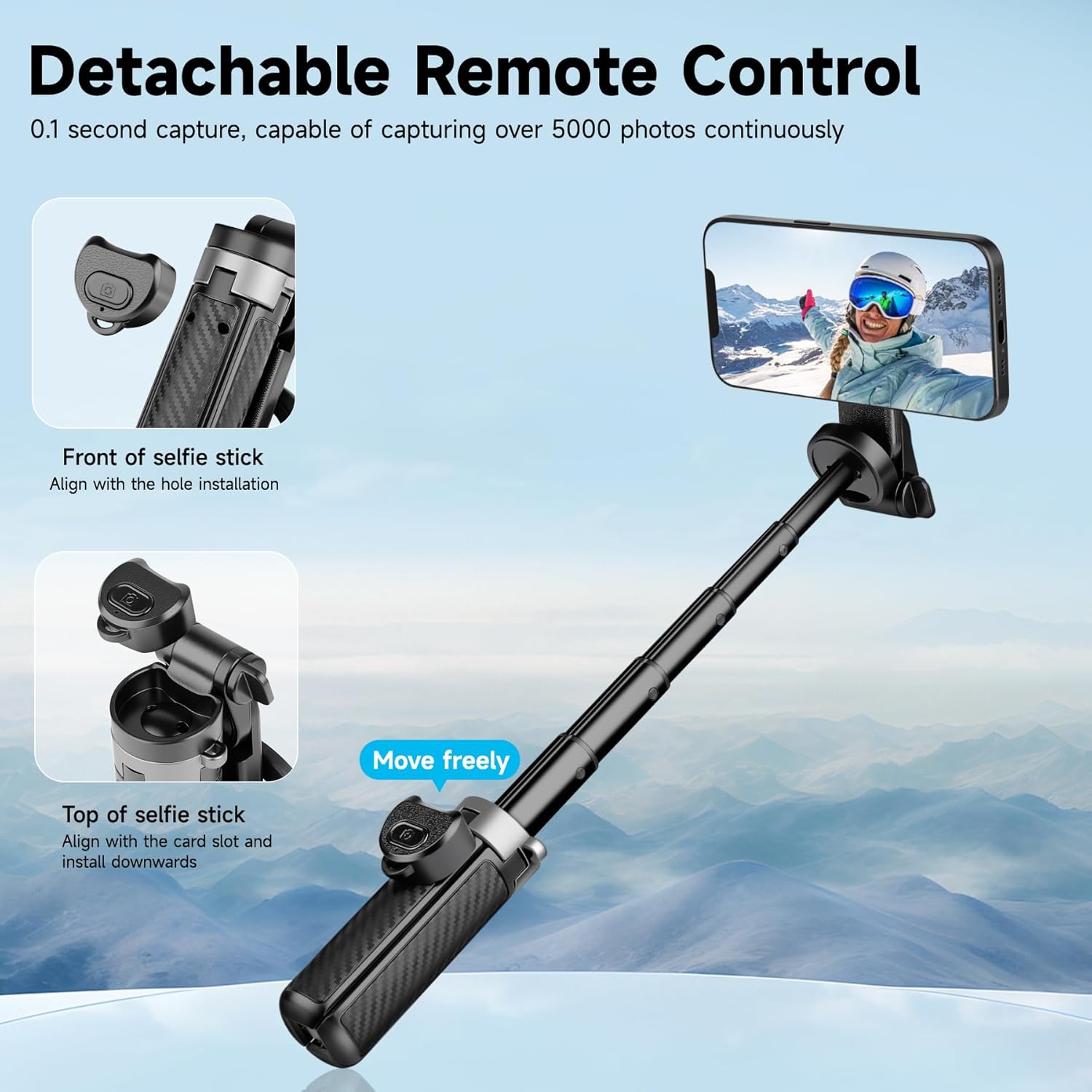 - 【Portable and Lightweight & Versatility】Stylish Design for Women, to document their lives on the go. Perfectly sized at just 11cm when folded – smaller than your phone! Weight just 113g. It's easily fits into your bag or pocket without adding extra bulk. Snap-Open Simplicity, Just pull to extend the sturdy aluminum pole and lock it securely in place – no complicated assembly. Retractable selfie stick beyond basic selfies, switch freely between 3 modes. Selfie Stick Tripod & Phone Tripod & Handheld Grip.