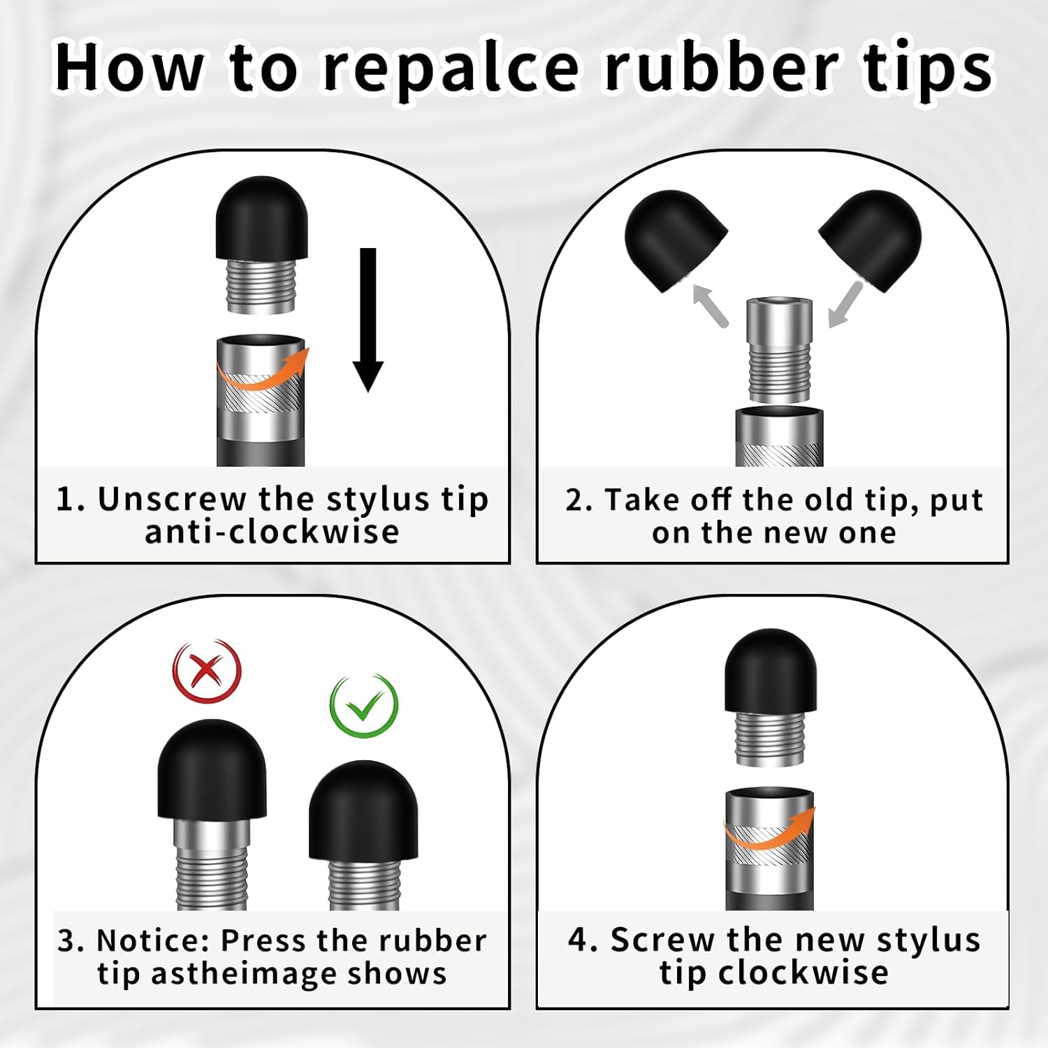- Avoid Scratches: The rubber material used in our stylus rubber tip is soft, not easy to wear, and durability. The soft surface of the rubber tip can effectively prevent your touch screen from being scratched by the pen tip. In addition, using a soft rubber tip can reduce writing noise, so you can use it in situations where you need to keep quiet.