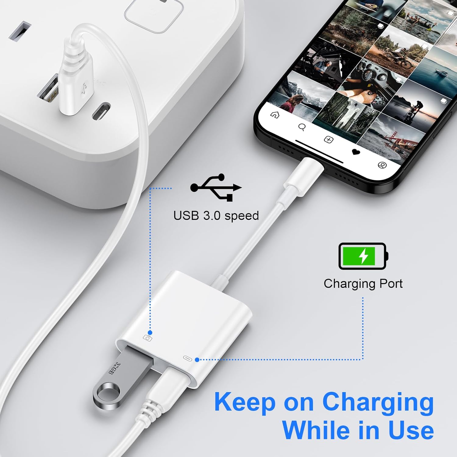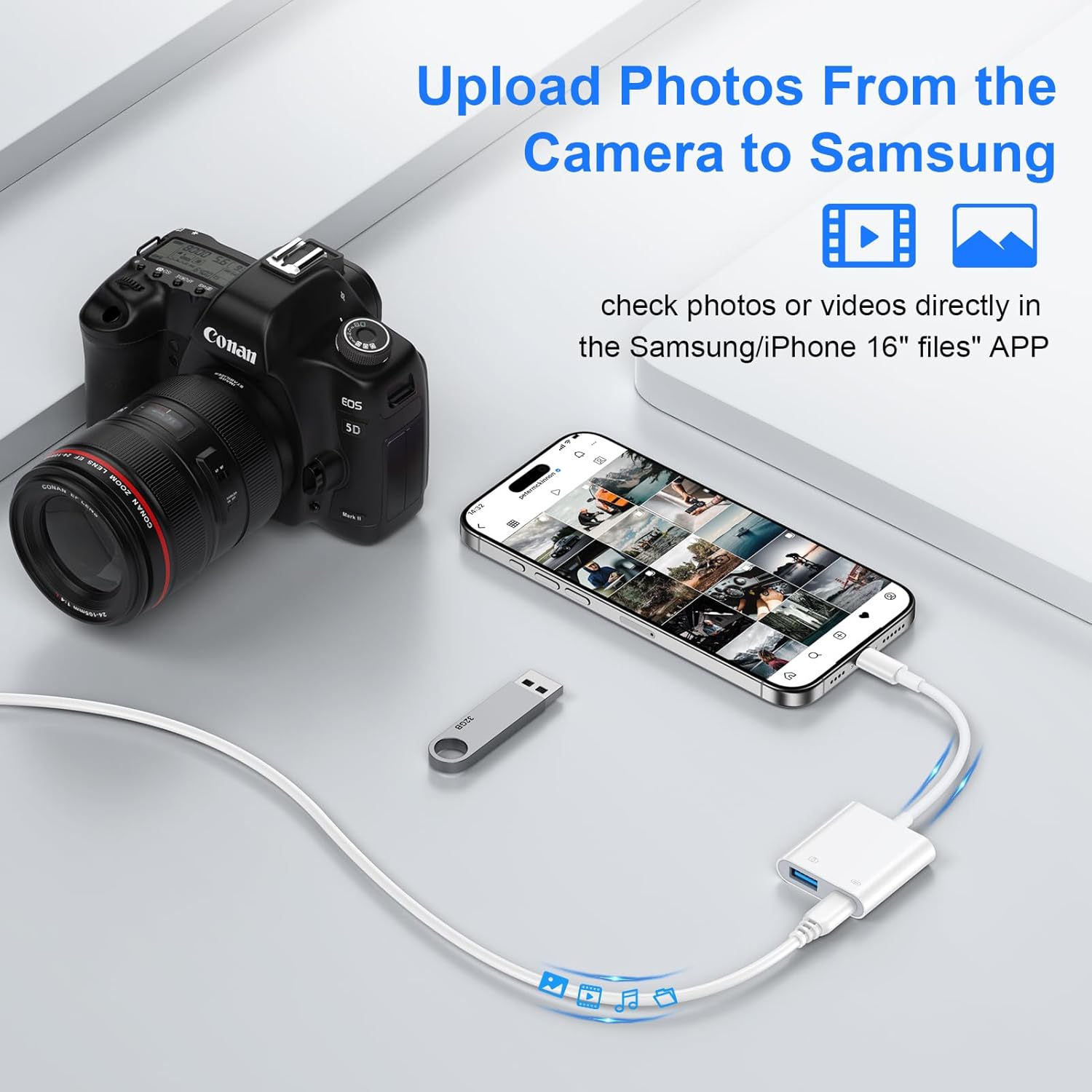 - 【Widely Compatible】 Our usb adapter supports standard photo formats,including JPER and RAW,and SD or HD video formats,including H.264 and MPEG-4.It is compatible with iPhone 16e/16/16 Pro Max/16 Plus/16 Pro/16, iPhone 15/15 Pro/15 Pro Max/15 Plus,Samsung Galaxy S25 Edge/Ultra/S25+/S25/S24/S24+/S24 FE/S24 Ultra/S23/S22/S21/S20/S10/S9/Note 20/Note10,A17 A56 A36 A26 A16 5G/A35/A55/A54/A15/A14/A13/A34/A53/A25/A24/A23, Z Fold 7/6/5/4/3, Z Flip 7/7 fe/6/5/4/3, Google Pixel 10/10 Pro/10 Pro XL/10 Pro Fold/9a/9 Pro XL/Fold/9 Pro/9/8a/8 Pro/8/7/7a/7 Pro/6/6 Pro/6a/5/5a/5XL/4/4a/4XL/3/3a/3XL, Motorola Edge/Razr 2025/G Power 2025/G Stylus, iPad Pro/Air/Mini with USB-C, LG Stylo 6/5/V60 ThinQ and more