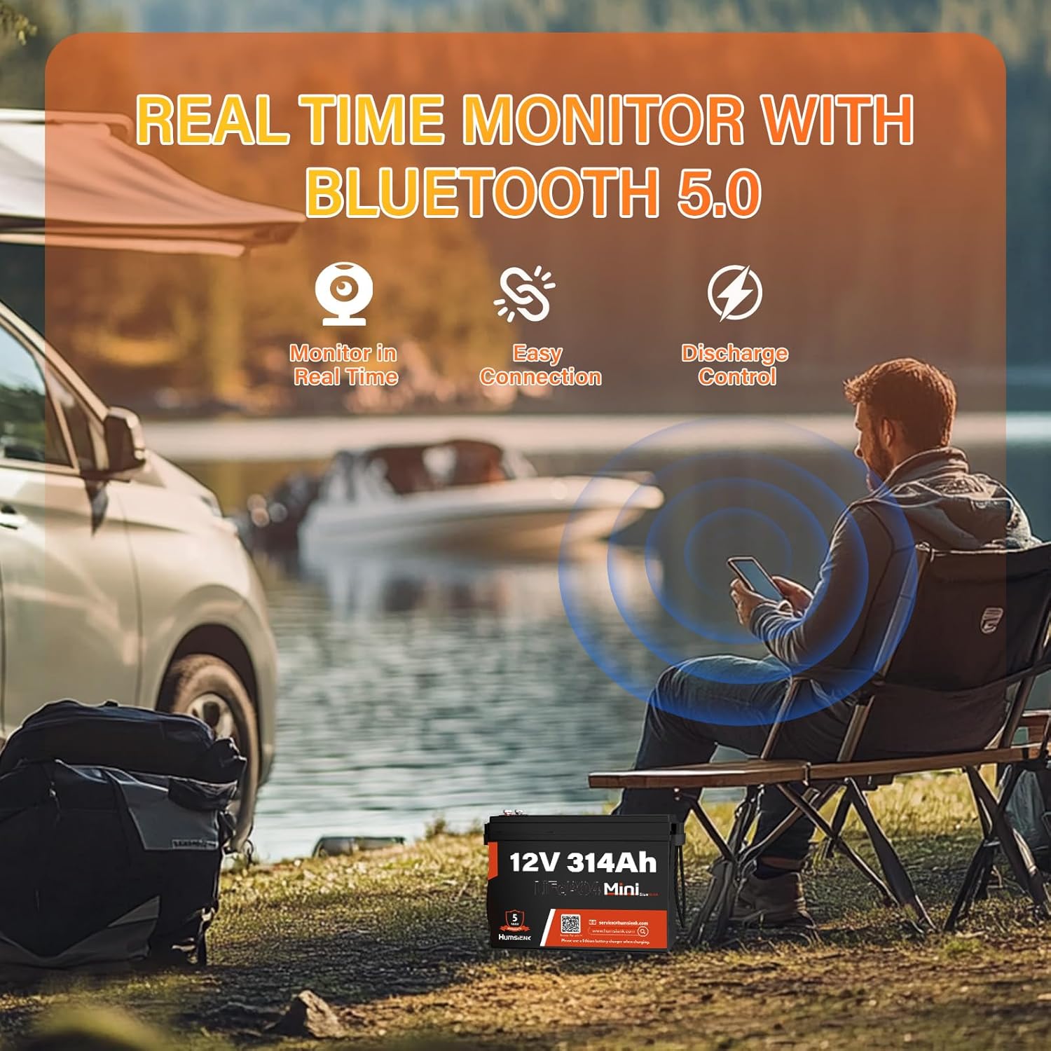- 【Bluetooth 5.0 Smart Monitoring】 – Real-time tracking via HumsiENK App (iOS/Android) for voltage, current, capacity, and temperature. 15m Bluetooth range for easy remote monitoring.(download via App Store or request QR for Android)HumsiENK provides 5-year coverage and 24-hour customer service for a worry-free experience.