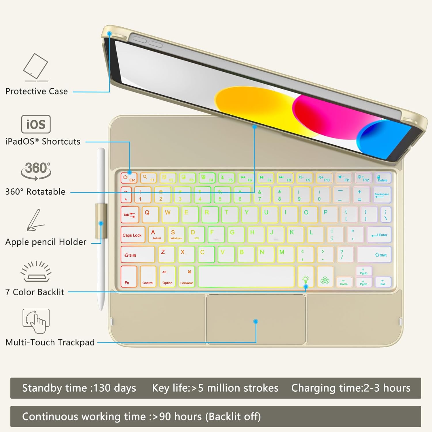 - Keyboard Description : Multi Functional - Touch Trackpad Keyboard - Backlit Keyboard for ipad 10th generation