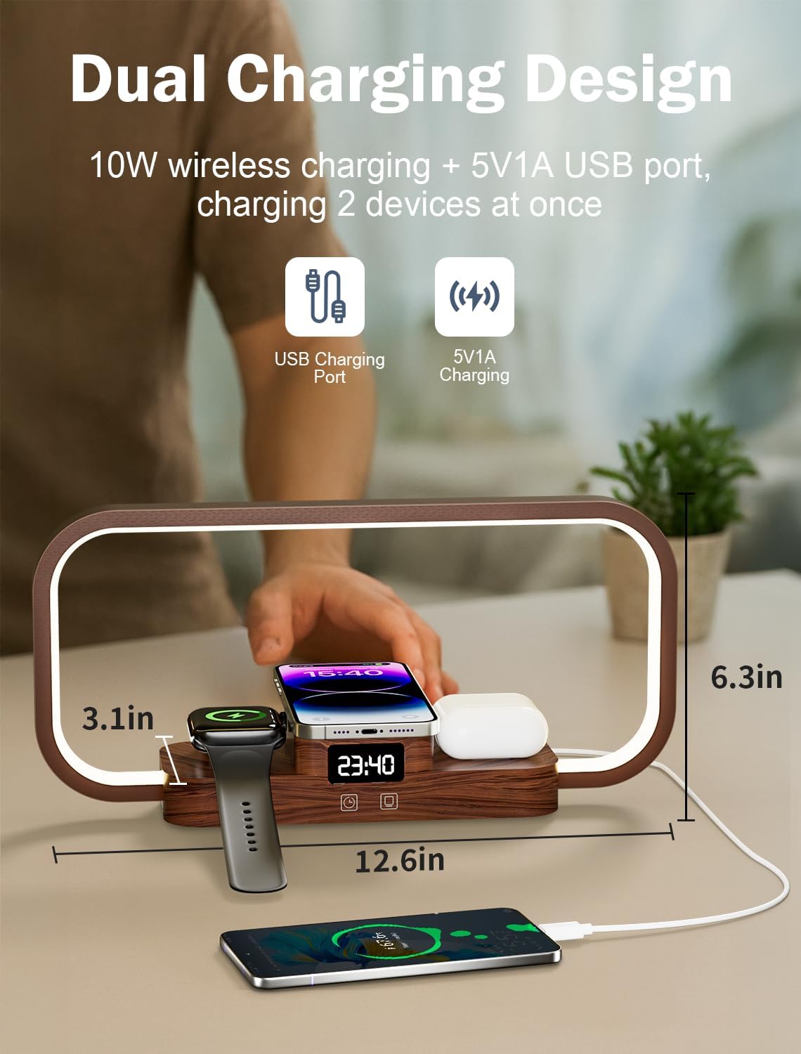 - 【Wireless Charging Compatible Models】Say goodbye to your messy bedside table caused by too many chargers and cables. Our wireless charger lamp compatible with Phone 16/16 Plus/16 Pro/ 16 Pro Max/Phone 15/15 Plus/15 Pro/ 15 Pro Max iPhone 14/14 Plus/14 Pro/ 14 Pro Max/13/13 Pro/13 Pro Max/13 mini/12/12 Pro Max/12 mini/11/11 Pro Max/SE 2020/XS MAX/XS/XR/X/8/8 plus. Galaxy S22 /S21/S20/Note 10/S10 and other phones support wireless charging function; Apple Watch 7/6/5/4/3/2/SE. Airpods Pro/3/2.
