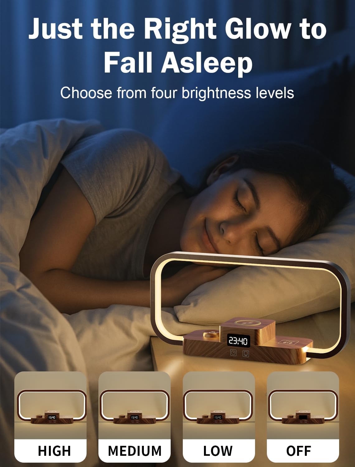 - 【Built-in Clock】This night stand lamp's added clock is a nice bonus—it’s clear and easy to read. Display 12 hours or 24 hours. Adjust the brightness of the clock to high/medium/low, or even turn it off, without being too bright at night. It’s practical, multi-functional, and a perfect addition to any modern bedroom or office.