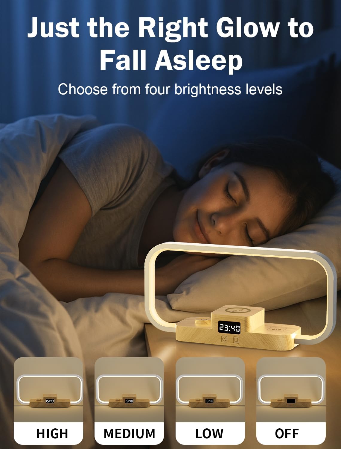 - 【Built-in Clock】This night stand lamp's added clock is a nice bonus—it’s clear and easy to read. Display 12 hours or 24 hours. Adjust the brightness of the clock to high/medium/low, or even turn it off, without being too bright at night. It’s practical, multi-functional, and a perfect addition to any modern bedroom or office.