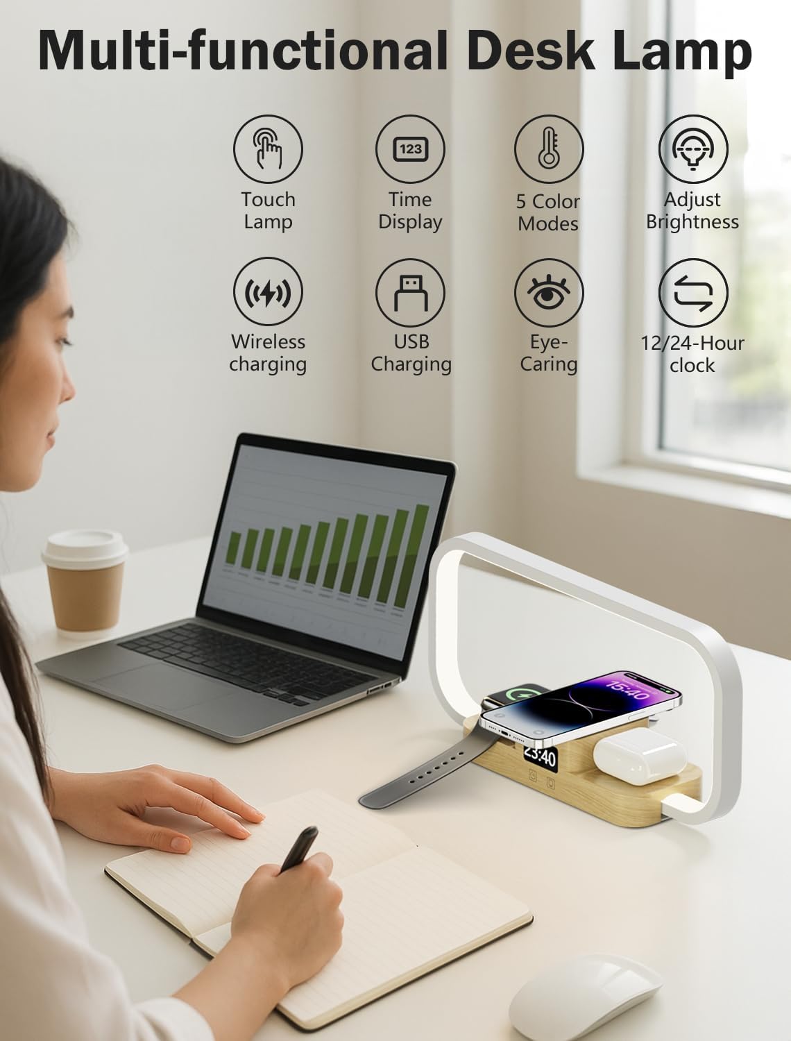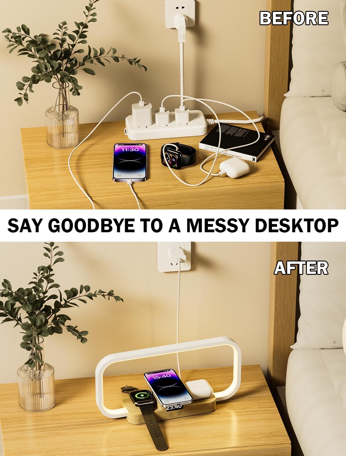 - 【Wireless Charging Compatible Models】Say goodbye to your messy bedside table caused by too many chargers and cables. Our wireless charger lamp compatible with Phone 16/16 Plus/16 Pro/ 16 Pro Max/Phone 15/15 Plus/15 Pro/ 15 Pro Max iPhone 14/14 Plus/14 Pro/ 14 Pro Max/13/13 Pro/13 Pro Max/13 mini/12/12 Pro Max/12 mini/11/11 Pro Max/SE 2020/XS MAX/XS/XR/X/8/8 plus. Galaxy S22 /S21/S20/Note 10/S10 and other phones support wireless charging function; Apple Watch 7/6/5/4/3/2/SE. Airpods Pro/3/2.
