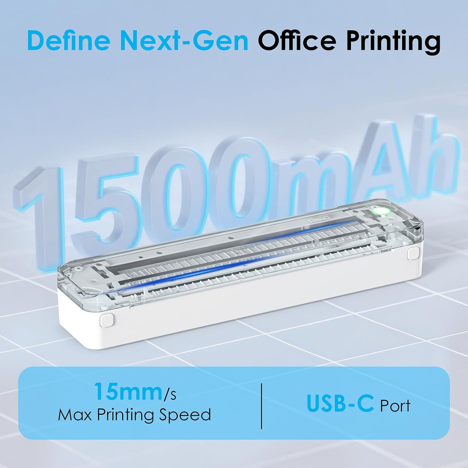 Portable Thermal Printer, Bluetooth Wireless Printer for Travel,Home Use,Office&School – Supports 8.5" x 11" US Letter, A4 & A5 Thermal Paper, Inkless Printing, Compatible with iOS, Android&Laptop