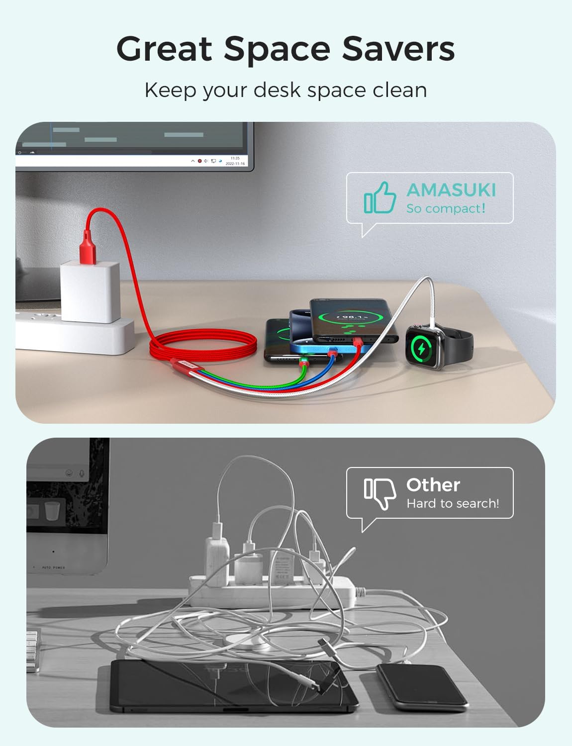 - ❥【Universal Compatibility】Multi USB cable is compatible with iPhone 16/15; iWatch series Ultra/10/9/8/7/6/SE2/SE/5/4/3/2/1; Samsung Galaxy S7/S6/S4 most Android phones & Wireless Accessories;Samsung Galaxy S10+/S10S9/S9+/S8/S7.Support to charger most of the mobile devices available on market