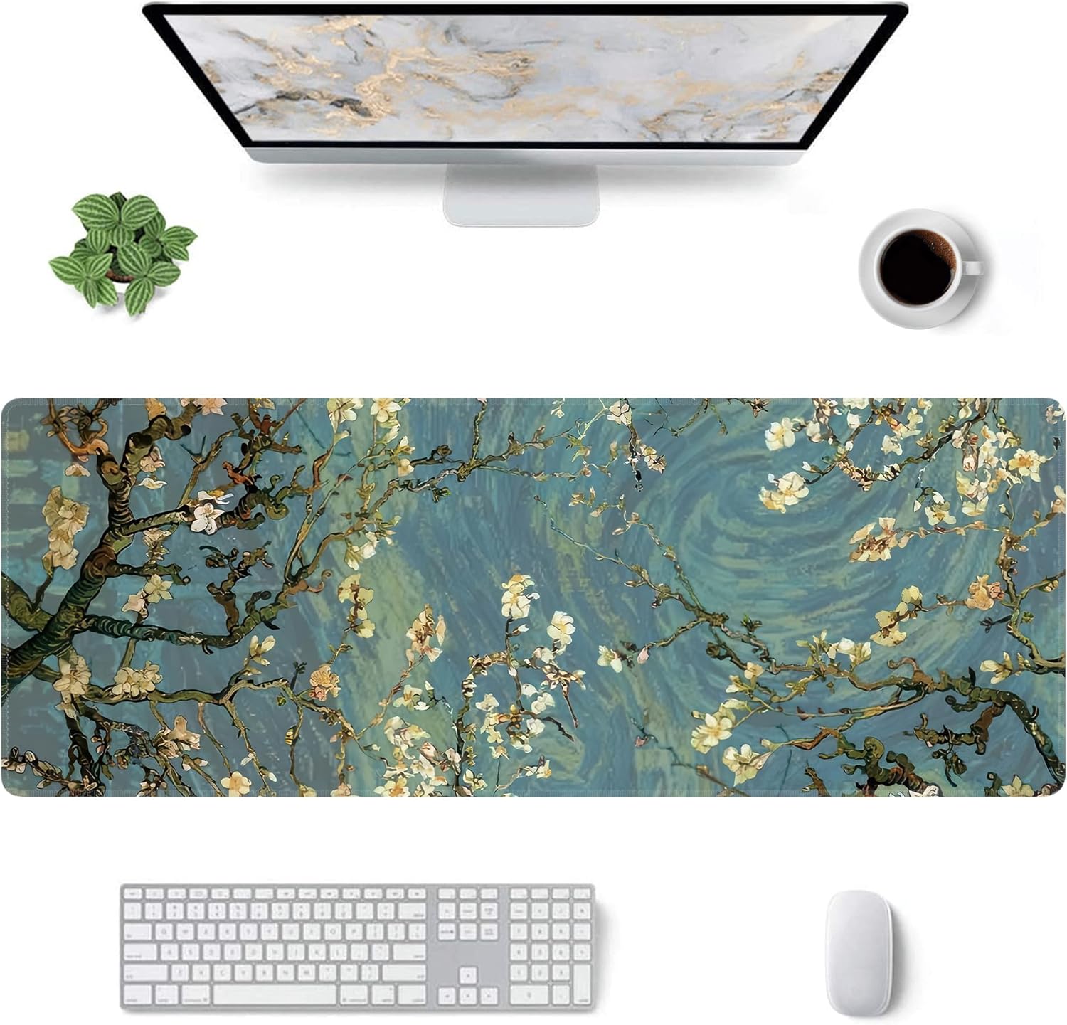 Almond Blossoms Large Mouse Pad,Gaming Keyboard Desk Pad,Extended Mouse Mat Non-Slip Rubber Base with Stitched Edges for Office Game Home XL 31.5"x11.8"