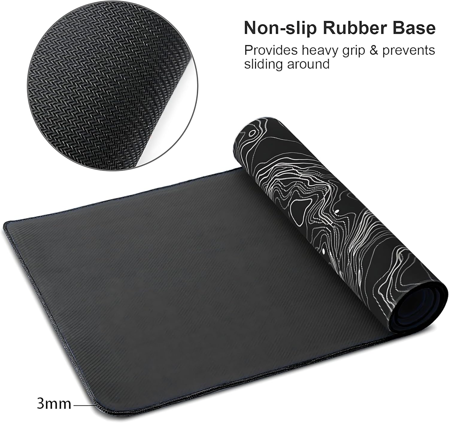 - 【Cute Cool Pattern】:Black with white topographic line pattern design for large desk pad,Various styles are suitable for office school home and gaming.Keyboard pad is a beautiful desk decoration and gift