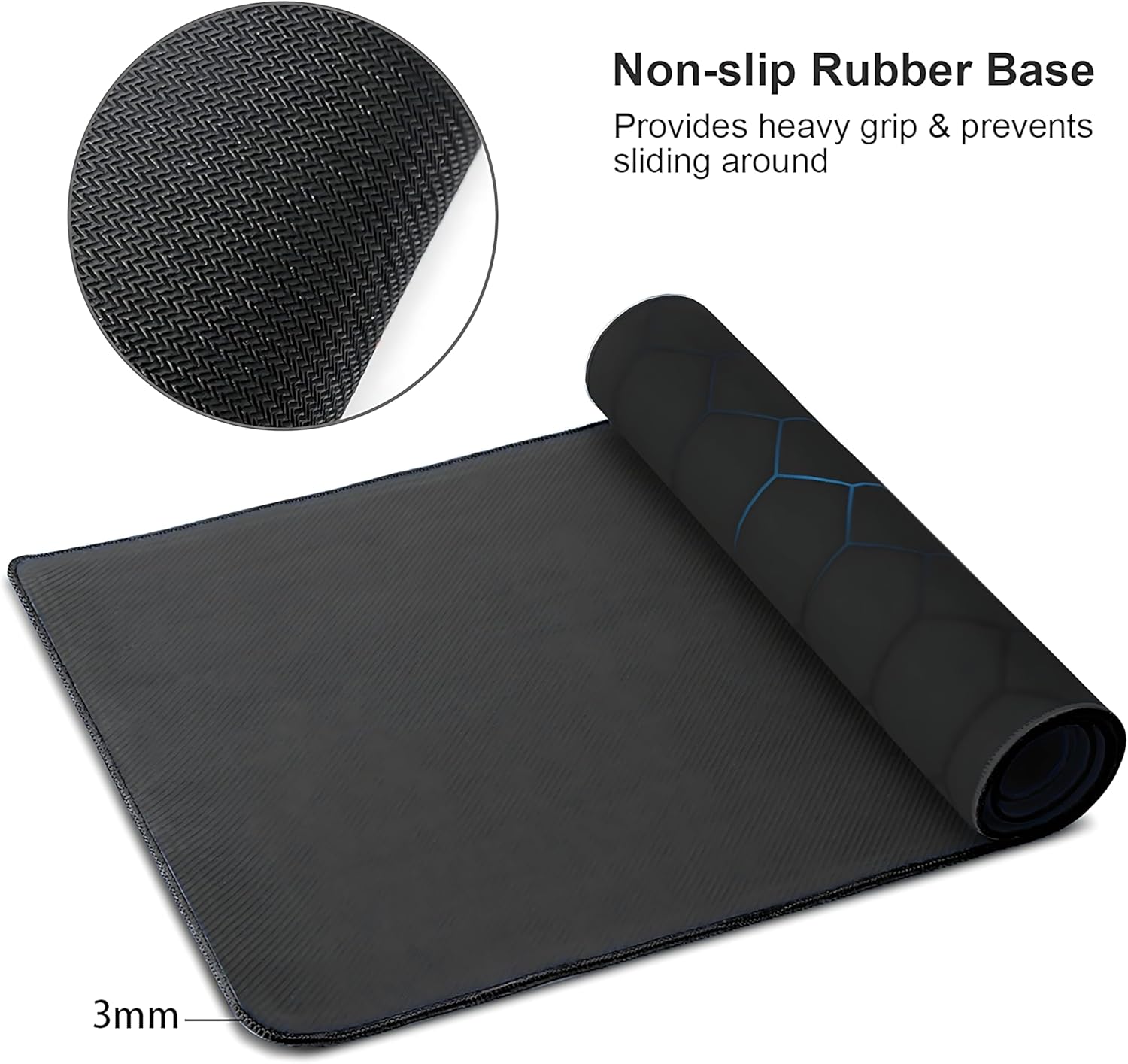 - 【Durable Material】: Gaming desk mat designed with superfine fiber braided material,The smooth surface will provide smooth mouse control and pinpoint accuracy.3mm thick non-slip rubber base with stitched edges,It will be more comfortable and durable for games and work