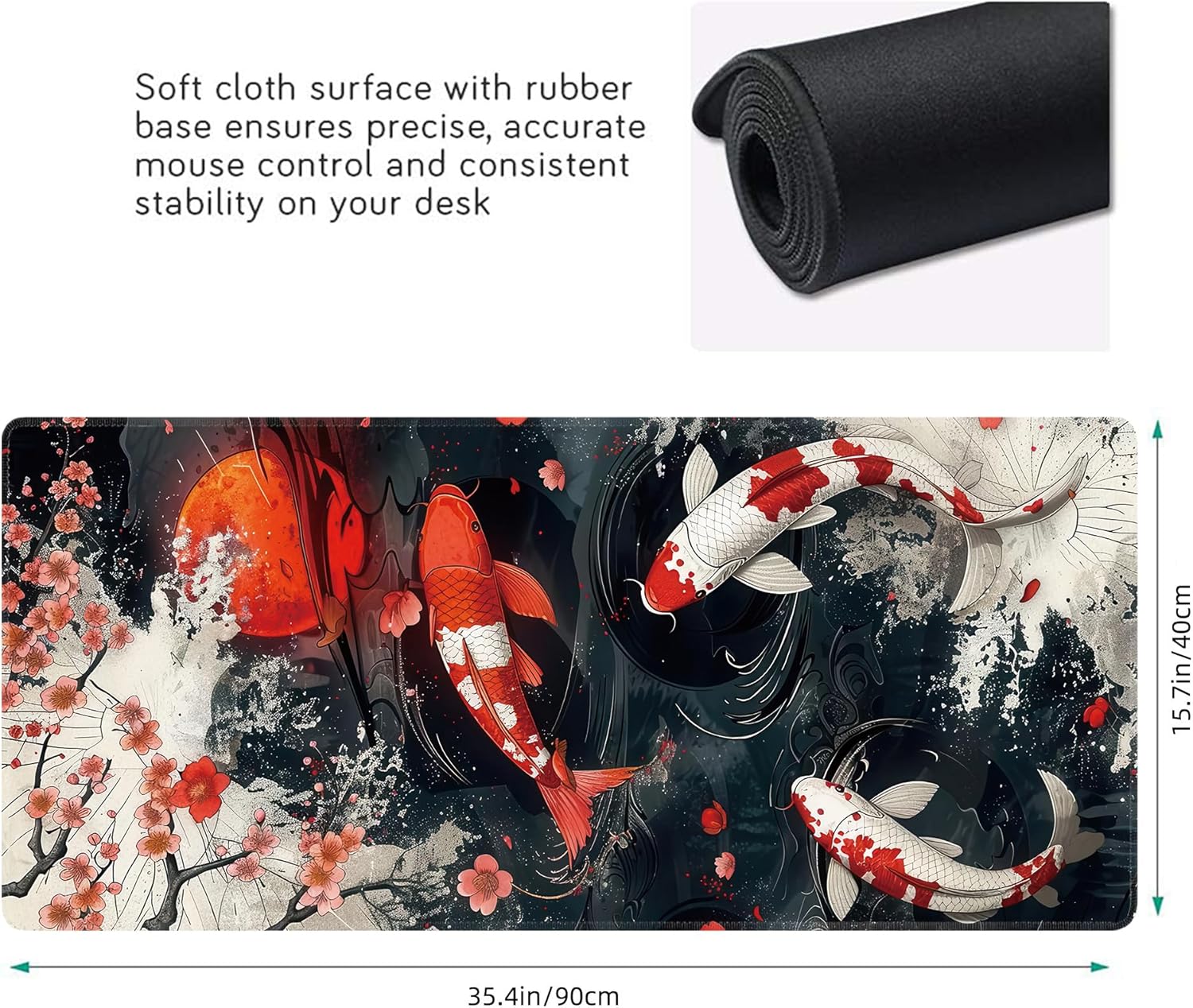 Koi Fish Large Mouse Pad,Gaming Keyboard Desk Pad,Extended Mouse Mat Non-Slip Rubber Base with Stitched Edges for Office Game Home XXL 35.4"x15.7"