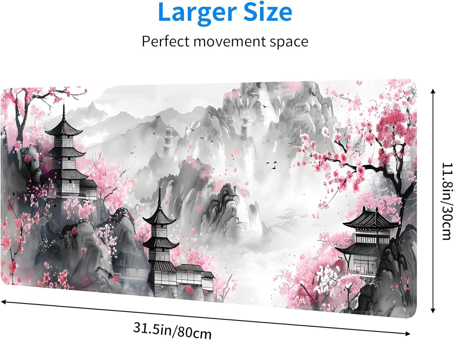 Japanese Cherry Blossom Large Mouse Pad,Gaming Keyboard Desk Pad,Extended Mouse Mat Non-Slip Rubber Base with Stitched Edges for Office Game Home XL 31.5"x11.8"