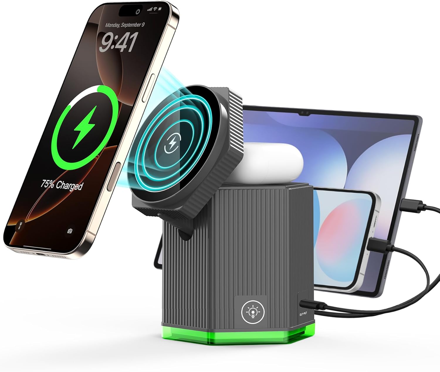 - What You Get: The package includes 1x 5-in-1 wireless charger for apple, 1x Type-C to Type-C cable, 1x user manual. This wireless charging station for apple products is easy to install and makes a practical gift for your family and friends.