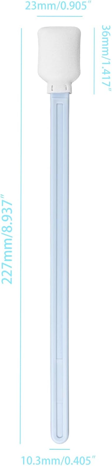 - Foam Cleaning Swabs👉KM203 Foam Tip Width 0.945" - Foam Tip Thickness 0.512" - Foam Tip Length 1.38" Swab measures 8.86″ long