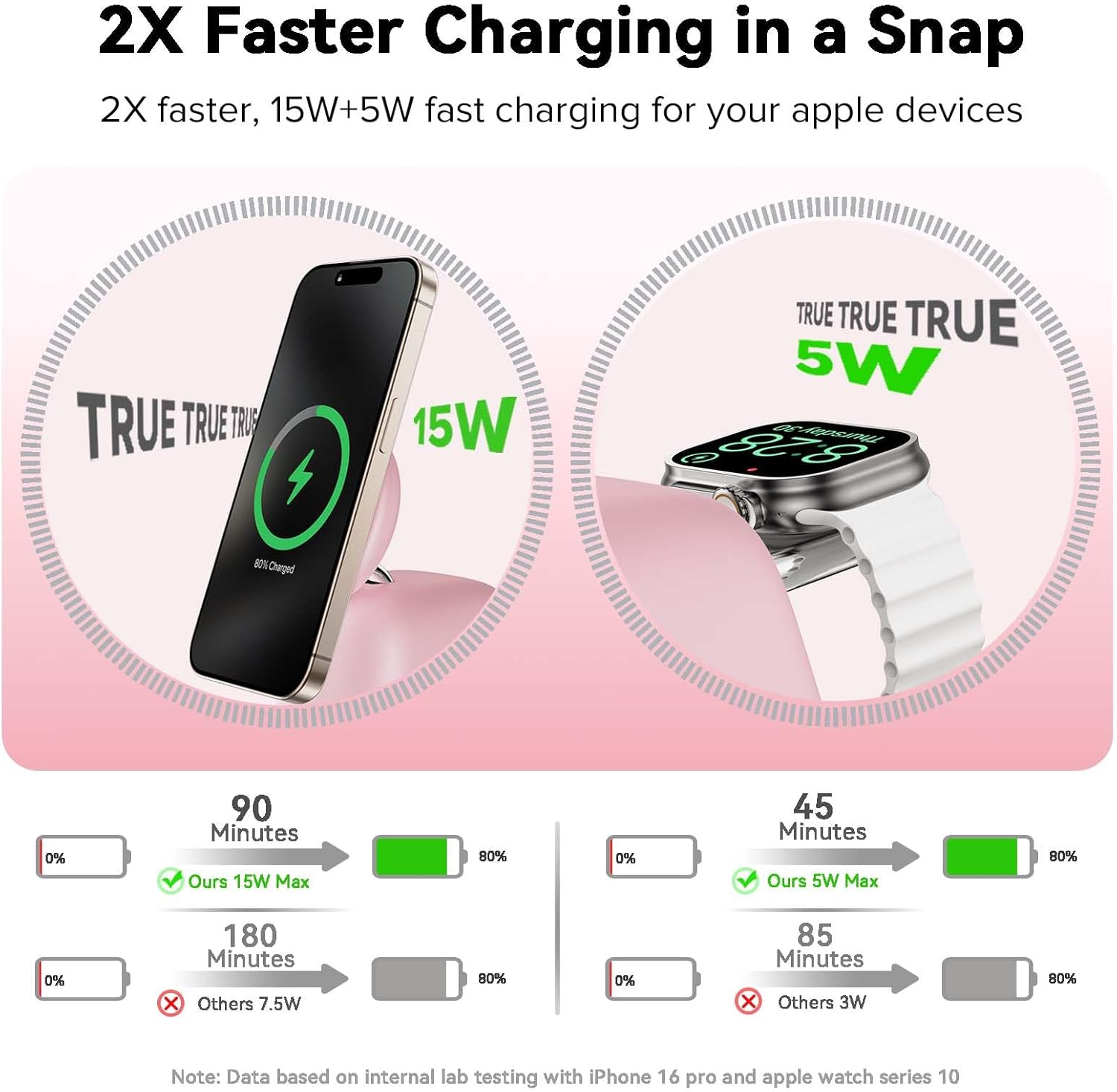 - Compatible with Mag-safe Charging: Works seamlessly with MagSafe apple devices, including iPhone 16/15/14/13/12 series, Apple Watch, and AirPods. No need to remove your Mag-Safe case—just snap on this Magnetic iPhone Charger for reliable, fast charging