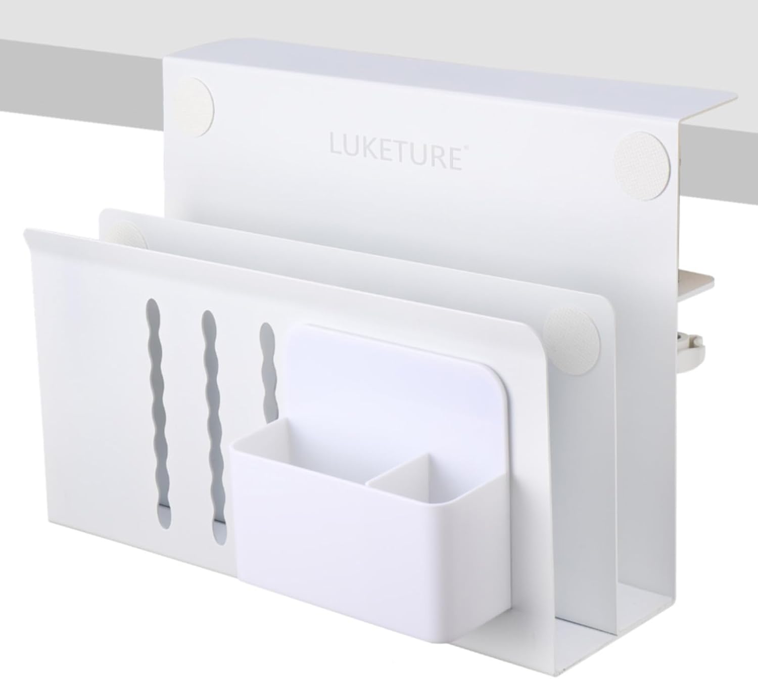 - 2 Tier Storage Design & High Quality Materials: The two-tier storage design allows you to classify and store documents and devices to increase storage capacity. Our desk side storage is made of high quality steel and the matching magnetic pen holder is made of high quality ABS. Our under desk laptop holder is strong and sturdy with capacity of holding maximum 30 lbs. They can be attached to magnetic cable holders, USB hubs, and other devices. Our side desk organizer is a great student gift for students during the backtoschool season